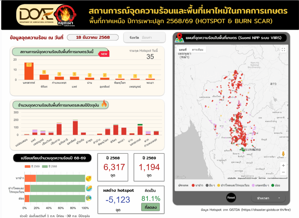 จุดความร้อนและสถานการณ์เพาะปลูกพืชฤดูแล้ง