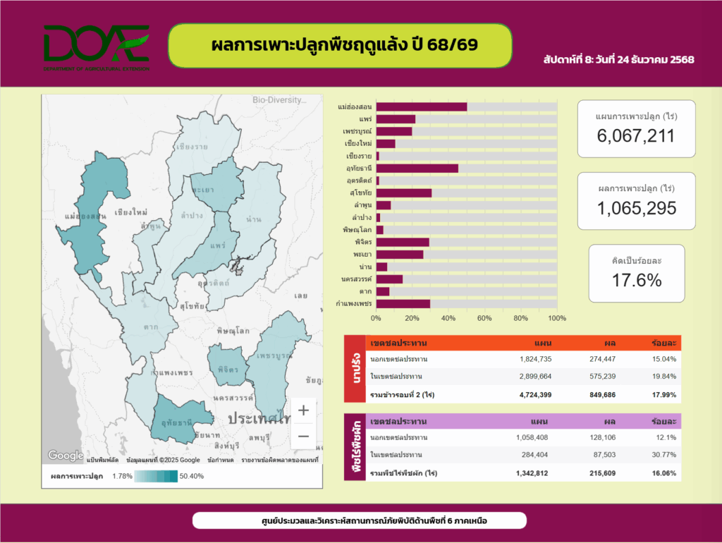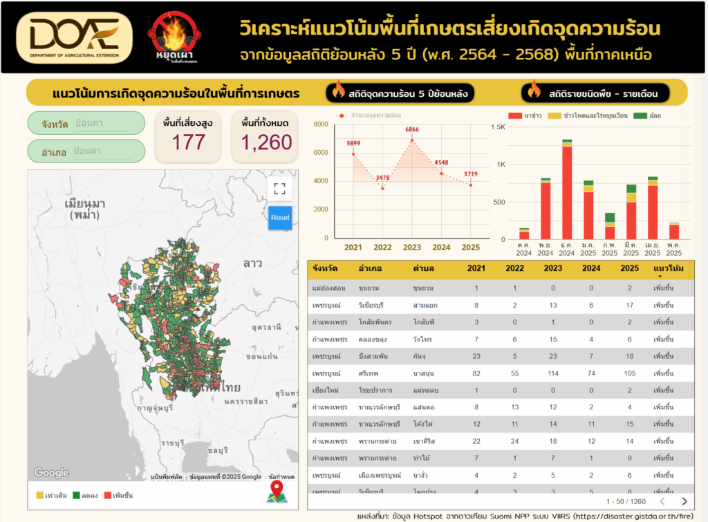 Dashboard วิเคราะห์แนวโน้มพื้นที่เกษตรเสี่ยงเกิดจุดความร้อนจากข้อมูลสถิติย้อนหลัง 5 ปี (พ.ศ. 2564 – 2568) พื้นที่ภาคเหนือ