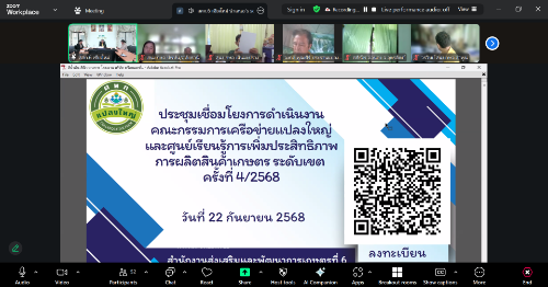 rnrnวันที่ 22 กันยายน 2568 สำนักงานส่งเสริมและพัฒนาการเกษตรที่ 6 จังหวัดเชียงใหม่ จัดประชุมคณะกรรมการเครือข่ายแปลงใหญ่และศูนย์เรียนรู้การเพิ่มประสิทธิภาพการผลิตสินค้าเกษตร ระดับเขต ครั้งที่ 4/2568 ผ่านระบบออนไลน์ ณ ห้องประชุมสำนักงานส่งเสริมและพัฒนาการเกษตรที่ 6 มี นายพสิษฐ์ สุขสวัสดิ์ ประธานแปลงใหญ่ ระดับเขต ภาคเหนือตอนบน เป็นประธาน ทั้งนี้มีนายเกียรติศักดิ์ กายสุต ประธานแปลงใหญ่ ระดับเขต ภาคเหนือตอนล่าง นายสายชล จันทร์วิไร ประธาน ศพก.ระดับเขต ภาคเหนือตอนล่าง นายสมชาติ วรรณคำ ประธาน ศพก.ระดับเขต ภาคเหนือตอนบน ประธานแปลงใหญ่ และประธานศพก.จังหวัด เจ้าหน้าที่ผู้รับผิดชอบงานระดับจังหวัดเข้าร่วมประชุมผ่านระบบออนไลน์ ซึ่งการประชุมในครั้งนี้มีประเด็นสำคัญ ได้แก่1.สรุปการประชุมเชื่อมโยงการดำเนินงานคณะกรรมการเครือข่ายศูนย์เรียนรู้การเพิ่มประสิทธิภาพการผลิตสินค้าเกษตร (ศพก.) ครั้งที่ 4/2568 ณ จังหวัดเลย 2.การประชุมคณะกรรมการเครือข่ายแปลงใหญ่ ระดับประเทศ ครั้งที่ 4/2568 ณ จังหวัดเลย3.รายงานความก้าวหน้าเกี่ยวกับพระราชบัญญัติข้าว4.รายงานความก้าวหน้าเกี่ยวกับพระราชบัญญัติลำไย5.สภาพภูมิอากาศ ปริมาณน้ำต้นทุน ปัจจัยสภาพแวดล้อมต่างๆ ที่มีอิทธิพลต่อการเจริญเติบโตและการให้ผลผลิตของพืชหรือสินค้าเกษตรหลัก6.ความเสี่ยงการเกิดภัยพิบัติ เช่น ภัยแล้ง น้ำท่วม โรคพืช ศัตรูพืชระบาด ปัญหาอุปสรรค และการแก้ไข การแจ้งเตือนภัย และการสร้างการรับรู้ให้กับเกษตรกร7.สถานการณ์การผลิต การเพาะปลูก การตลาด ปัญหาอุปสรรค แนวทางการแก้ไข8.ปัญหาความเดือดร้อน และเรื่องร้องเรียนของเกษตรกร และแนวการดำเนินการแก้ไขปัญหา9.ปัญหา อุปสรรค และแนวทางการขับเคลื่อนการดำเนินการศูนย์เรียนรู้การเพิ่มประสิทธิภาพการผลิตสินค้าเกษตร (ศพก.) 17 จังหวัดภาคเหนือ10.ปัญหา อุปสรรค และแนวทางการขับเคลื่อนการดำเนินงานแปลงใหญ่ 17 จังหวัดภาคเหนือrnrn