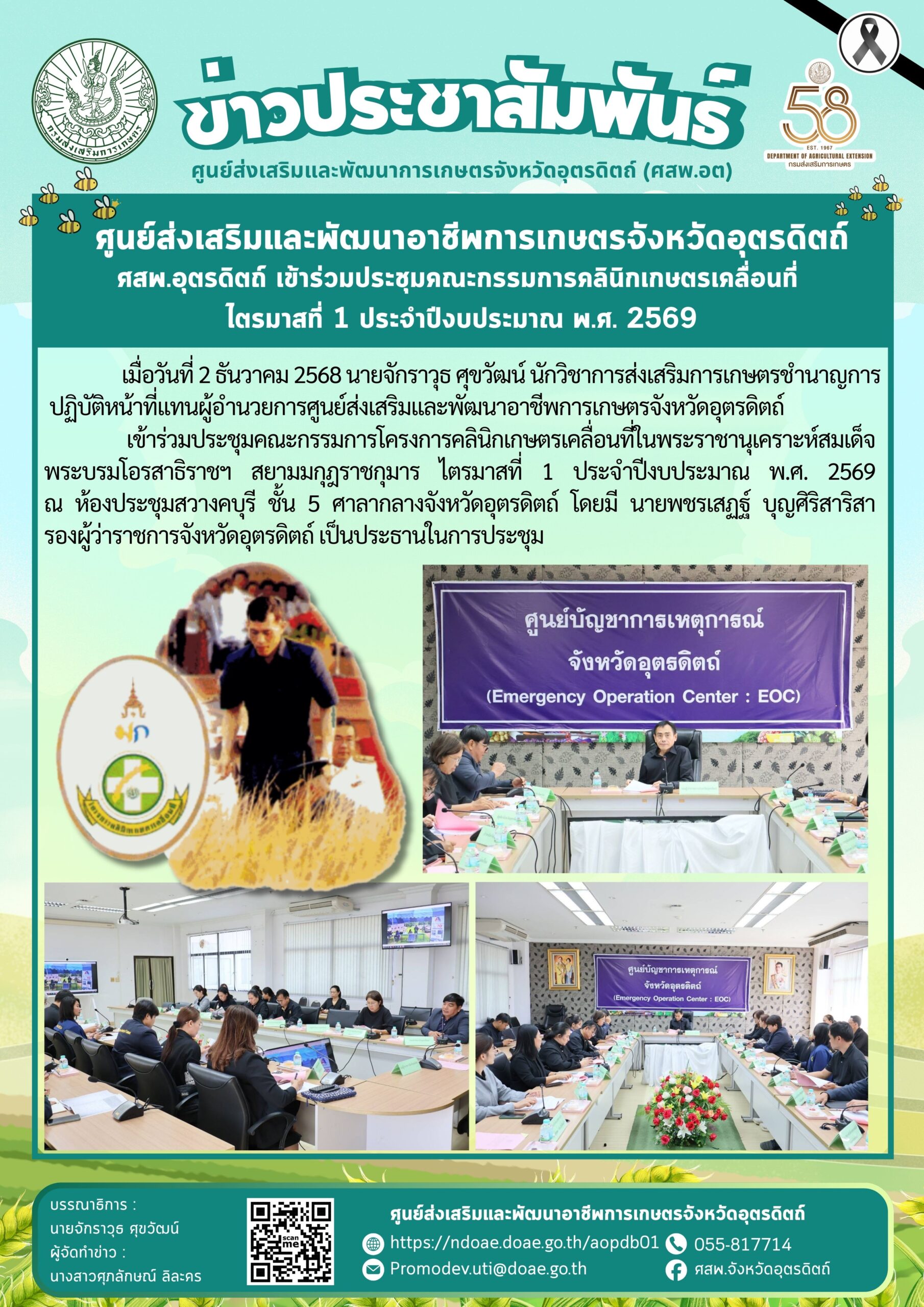 ศสพ.อุตรดิตถ์ เข้าร่วมประชุมคณะกรรมการคลินิกเกษตรเคลื่อนที่ ไตรมาสที่ 1 ประจำปีงบประมาณ พ.ศ. 2569