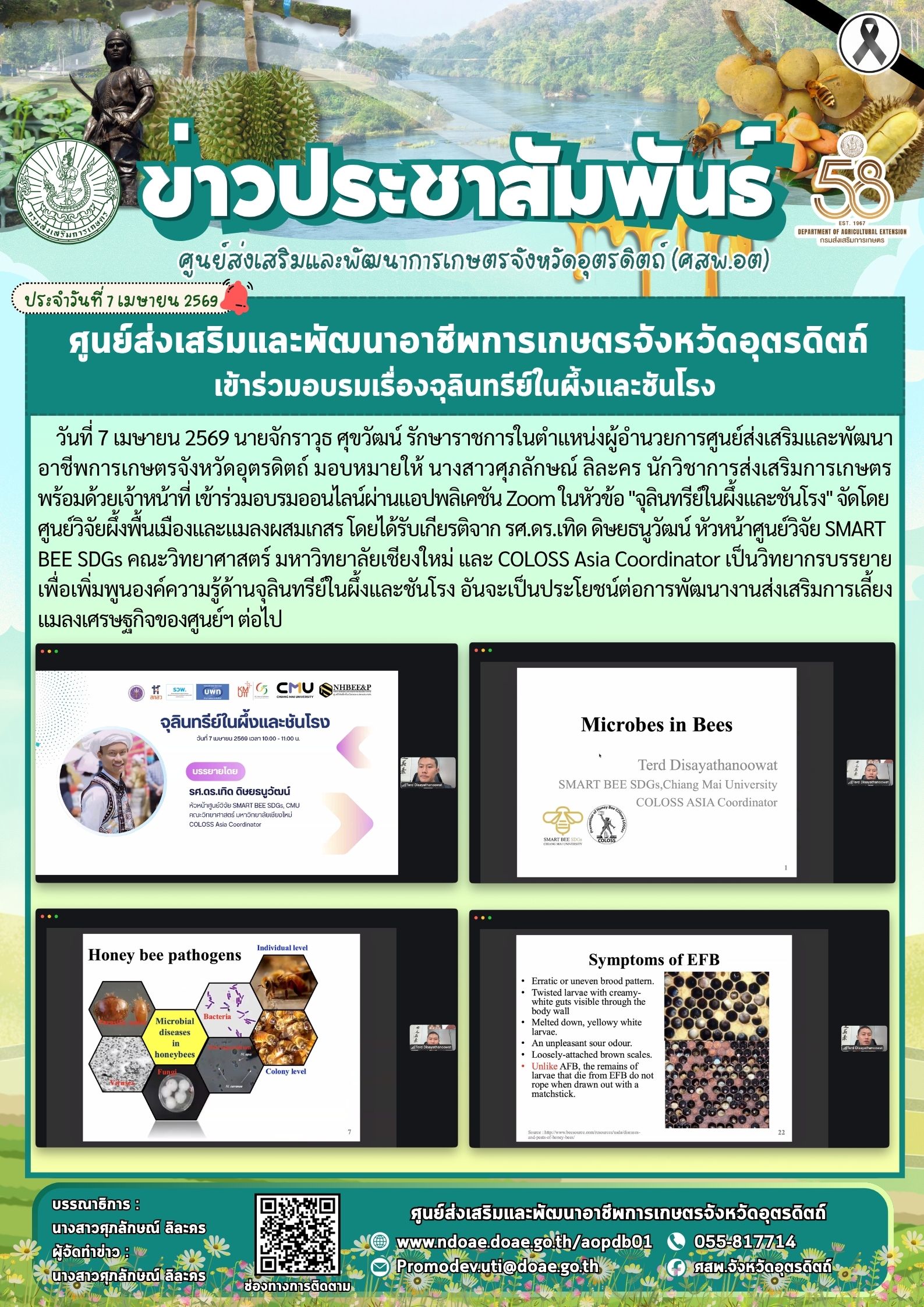 ศสพ.อุตรดิตถ์ เข้าร่วมอบรมเรื่องจุลินทรีย์ในผึ้งและชันโรง