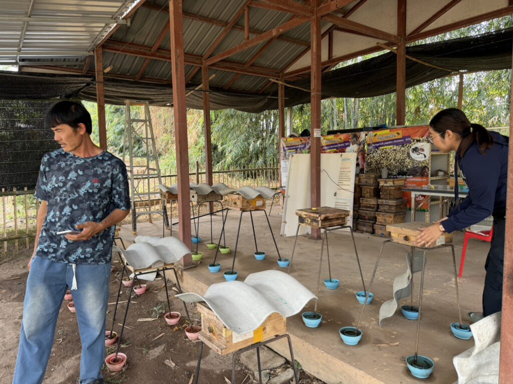วันที่ 23 กุมภาพันธ์ 2569 นายจักราวุธ ศุขวัฒน์ รักษาราชการแทนในตำแหน่งผู้อำนวยการศูนย์ส่งเสริมและพัฒนาอาชีพการเกษตรจังหวัดอุตรดิตถ์ มอบหมายให้ นางสาวอารดา เรืองอดุลย์วิทย์ เจ้าพนักงานการเกษตร ดำเนินการสนับสนุนรังชันโรงเพื่อใช้ผสมเกสรในแปลงเรียนรู้เกษตรกรปราดเปรื่อง (Smart Farmer) กิจกรรมเกษตรผสมผสาน ในพื้นที่ตำบลท่าตาล อำเภอกระทุ่ม จังหวัดพิษณุโลก โดยเกษตรกรได้เข้ามารับบริการ ณ ศูนย์ส่งเสริมและพัฒนาอาชีพการเกษตรจังหวัดอุตรดิตถ์ เพื่อส่งเสริมให้เกษตรกรใช้ชันโรงในการผสมเกสรพืช ซึ่งจะช่วยเพิ่มผลผลิตและคุณภาพของพืชในระบบเกษตรผสมผสาน เกิดการพัฒนาศักยภาพเกษตรกรให้สามารถบริหารจัดการฟาร์มได้อย่างมีประสิทธิภาพและยั่งยืน