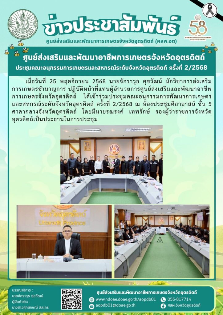 ข่าวประชาสัมพันธ์ศสพ.อุตรดิตถ์ เข้าร่วมประชุมคณะอนุกรรมการพัฒนาการเกษตรและสหกรณ์ระดับจังหวัดอุตรดิตถ์ ครั้งที่ 2/2568 doaeUtt / 25 พฤศจิกายน 2025 เมื่อวันที่ 24 พฤศจิ