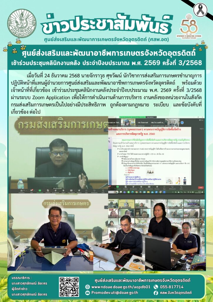 ข่าวประชาสัมพันธ์ศสพ.อุตรดิตถ์ เข้าร่วมประชุมคลินิกงานคลัง ประจำปีงบประมาณ พ.ศ. 2569 ครั้งที่ 3/2568 doaeUtt / 24 ธันวาคม 2025 เมื่อวันที่ 24 ธันวา