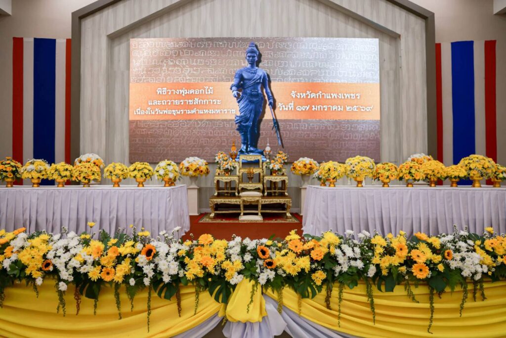 วันที่ 17 มกราคม 2569 นายอนุรักษ์ เรือนหล้า ผู้อำนวยการศูนย์ส่งเสริมและพัฒนาอาชีพการเกษตร จังหวัดกำแพงเพชร มอบหมายให้ นางสาวนัฏฐา พันธ์ุชูเพ็ชร นักวิชการส่งเสริมการเกษตรชำนาญการ และนางโชติรส ไกรวุฒินันท์ นักวิชาการส่งเสริมการเกษตรชำนาญการ ร่วมงานรัฐพิธี “วันพ่อขุนรามคำแหงมหาราช” ในวันเสาร์ที่ 17 มกราคม 2569 เวลา 08.00 น. ณ หอประชุมใหญ่ ศูนย์ราชการจังหวัดกำแพงเพชร โดยมีนายอนุชา พัสถาน รองผู้ว่าราชการจังหวัดกำแพงเพชร เป็นประธานในพิธีวางพานพุ่มดอกไม้สด