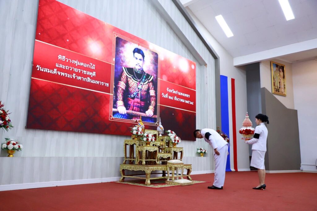 วันที่ 28 ธันวาคม 2568 นายอนุรักษ์ เรือนหล้า ผู้อำนวยการศูนย์ส่งเสริมและพัฒนาอาชีพการเกษตรจังหวัดกำแพงเพชร มอบหมายให้นายจีรวัฒน์ จันทวงษ์ นักวิชาการส่งเสริมการเกษตรชำนาญการ เข้าร่วมพิธีวางพุ่มดอกไม้และถวายราชสดุดี เพื่อเทิดพระเกียรติและน้อมรำลึกในพระมหากรุณาธิคุณของสมเด็จพระเจ้าตากสินมหาราช เนื่องใน“วันสมเด็จพระเจ้าตากสินมหาราช”ซึ่งตรงกับวันที่ 28 ธันวาคมของทุกปี ประจำปี 2568 วันคล้ายวันปราบดาภิเษกสมเด็จพระเจ้าตากสินมหาราชน้อมรำลึกถึงพระมหากรุณาธิคุณของสมเด็จพระเจ้าตากสินมหาราชพระมหากษัตริย์ผู้ทรงกอบกู้เอกราช รวบรวมแผ่นดินไทยให้กลับคืนเป็นปึกแผ่นด้วยพระปรีชาสามารถ ความกล้าหาญ และพระวิริยอุตสาหะอย่างหาที่สุดมิได้พระราชกรณียกิจและพระเกียรติคุณของพระองค์ยังคงเป็นแบบอย่างแห่งความเสียสละ ความรักชาติและความมุ่งมั่นเพื่อประโยชน์สุขของแผ่นดินไทยตราบจนปัจจุบัน ณ ที่หอประชุมใหญ่ ศูนย์ราชการจังหวัดกำแพงเพชร จังหวัดกำแพงเพชร