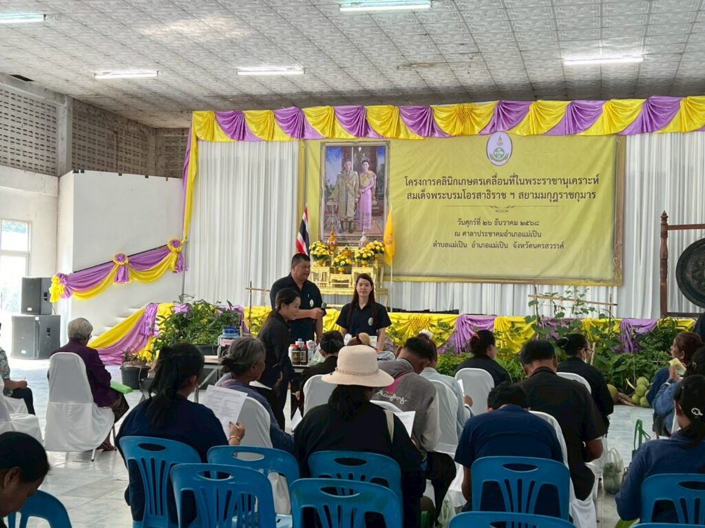 วันที่ 26 ธันวาคม 2568 นายอนุรักษ์ เรือนหล้า ผู้อำนวยการศูนย์ส่งเสริมและพัฒนาอาชีพการเกษตรจังหวัดกำแพงเพชร มอบหมายให้นางสาวชนิสรา รอดไพร นักวิชาการส่งเสริมการเกษตรปฏิบัติการ พร้อมเจ้าหน้าที่ ฯ เข้าร่วมโครงการคลินิกเกษตรเคลื่อนที่ในพระราชานุเคราะห์ สมเด็จพระบรมโอรสาธิราชฯ สยามมกุฎราชกุมาร ประจำปีงบประมาณ 2569 ครั้งที่ 1 ณ ศาลาประชาคมอำเภอแม่เปิน จังหวัดนครสวรรค์