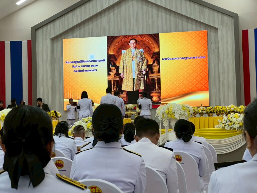 วันที่ 2 มีนาคม 2569 นายอนุรักษ์ เรือนหล้า ผู้อำนวยการศูนย์ส่งเสริมและพัฒนาอาชีพการเกษตรจังหวัดกำแพงเพชร มอบหมายให้ นายฉัตรชัย พรโสภณ นักวิชาการส่งเสริมการเกษตรชำนาญการ เข้าร่วมพิธีถวายราชสักการะแด่พระบาทสมเด็จพระบรมชนกาธิเบศร มหาภูมิพลอดุลยเดชมหาราช บรมนาถบพิตร “พระบิดาแห่งมาตรฐานการช่างไทย” เนื่องใน “วันมาตรฐานฝีมือแรงงานแห่งชาติ”ภายในพิธีฯ ประธานในพิธีถวายความเคารพพระบรมฉายาลักษณ์พระบาทสมเด็จพระบรมชนกาธิเบศร มหาภูมิพลอดุลยเดชมหาราช บรมนาถบพิตร และวางพานพุ่มถวายราชสักการะพระบรมฉายาลักษณ์พระบาทสมเด็จพระบรมชนกาธิเบศร มหาภูมิพลอดุลยเดชมหาราช บรมนาถบพิตร จากนั้น ประธานในพิธี ถวายราชสดุดีเทิดพระเกียรติพระบรมฉายาลักษณ์พระบาทสมเด็จพระบรมชนกาธิเบศร มหาภูมิพลอดุลยเดชมหาราช บรมนาถบพิตร ในฐานะทรงเป็น “พระบิดาแห่งมาตรฐานการช่างไทย” และถวายความเคารพ ณ ที่หอประชุมศูนย์ราชการจังหวัดกำแพงเพชร