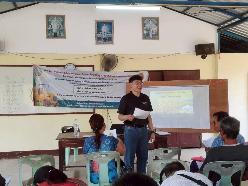 วันที่ 24 มีนาคม 2569 นายอนุรักษ์ เรือนหล้า ผู้อำนวยการศูนย์ส่งเสริมและพัฒนาอาชีพการเกษตรจังหวัดกำแพงเพชร มอบหมายให้ นายฉัตรชัย พรโสภณ นักวิชาการส่งเสริมการเกษตรชำนาญการ เป็นวิทยากรถ่ายทอดความรู้แก่เกษตรกรกลุ่มเป้าหมาย หัวข้อ “การจัดการธาตุอาหารใช้ปุ๋ยตามค่าวิเคราะห์ดินในปริมาณที่เหมาะสม เพื่อลดต้นทุนและมลภาวะ” ภายใต้โครงการส่งเสริมการเพิ่มประสิทธิภาพการผลิตอย่างครบวงจร ณ อำเภอพรานกระต่าย จังหวัดกำแพงเพชร
