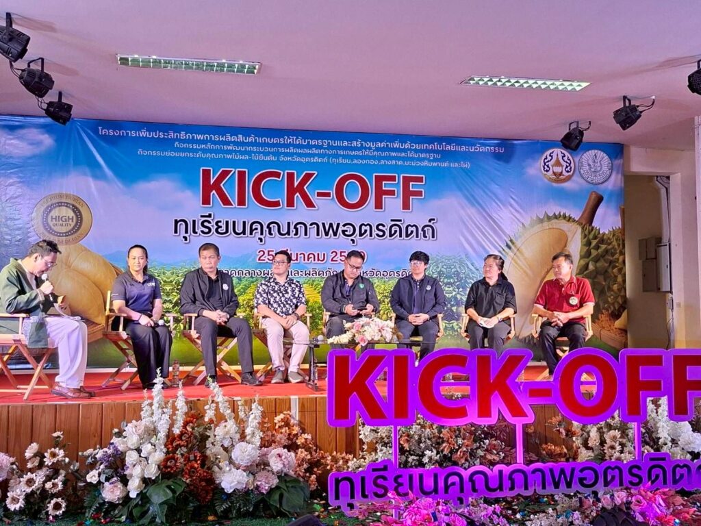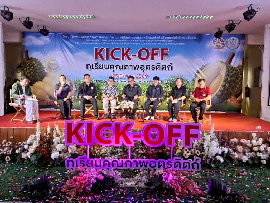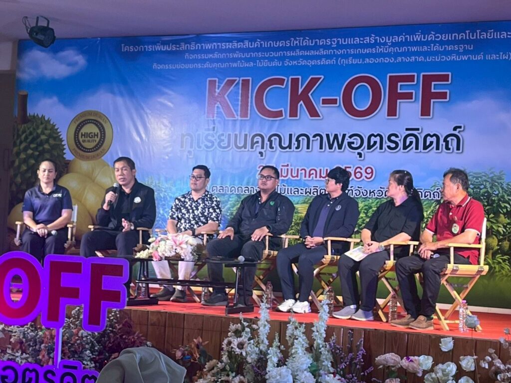 วันที่ 25 มีนาคม 2569 นายอนุรักษ์ เรือนหล้า ผู้อำนวยการศูนย์ส่งเสริมและพัฒนาอาชีพการเกษตรจังหวัดกำแพงเพชร มอบหมายให้ นายทรงยศ จันทสิงห์ วิศวกรการเกษตรชำนาญการ เข้าร่วมเวทีเสวนาวิชาการ เรื่องการผลิตทุเรียนคุณภาพพร้อมจัดนิทรรศการระบบน้ำทางการเกษตรในการผลิตทุเรียนคุณภาพและสร้างมูลค่าเพิ่มด้วยเทคโนโลยีและนวัตกรรม ทุเรียน (Kick-off) เพื่อยกระดับคุณภาพทุเรียนและปกป้องรายได้มหาศาลของเกษตรกรในพื้นที่รณรงค์ป้องกัน “หนอนเจาะเมล็ดทุเรียน” เสริมแกร่งราชาผลไม้เมืองลับแล ภายในงานจัดขึ้นในรูปแบบสถานีเรียนรู้ 5 สถานี (สถานีพิชิตหนอนเจาะเมล็ดทุเรียน) ครอบคลุมเนื้อหาสำคัญ ได้แก่: 1. ระบบน้ำในสวนทุเรียน เพื่อการจัดการที่มีประสิทธิภาพ 2. วงจรชีวิตหนอนเจาะเมล็ด เข้าใจลึกซึ้งเพื่อป้องกันได้ตรงจุด 3. วิธีการป้องกันและกำจัด 4. การผลิตและการจัดการทุเรียนคุณภาพ 5. การแปรรูปทุเรียน เพื่อสร้างมูลค่าเพิ่ม โดยมีนายสันติ รังษิรุจิ ผู้ว่าราชการจังหวัดอุตรดิตถ์ เป็นประธานในพิธีเปิดงานรณรงค์ป้องกันปัญหาหนอนเจาะเมล็ดทุเรียน (Kick-off) ณ ห้องประชุมตลาดกลางผลไม้ (OTOP) เทศบาลตำบลหัวดง อำเภอลับแล