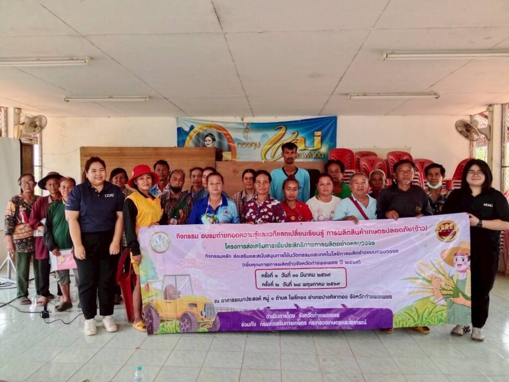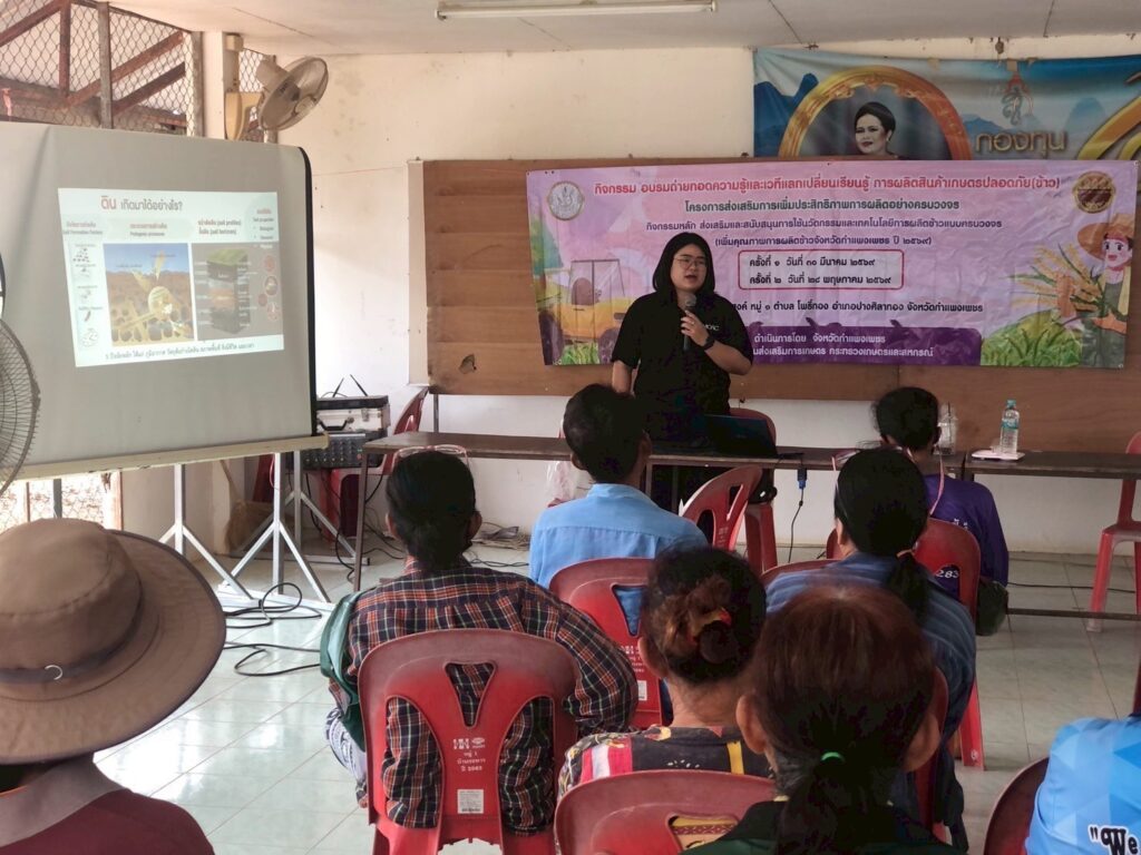 วันที่ 30 มีนาคม 2569 นายอนุรักษ์ เรือนหล้า ผู้อำนวยการศูนย์ส่งเสริมและพัฒนาอาชีพการเกษตร จังหวัดกำแพงเพชร มอบหมายให้ นางสาวชนิสรา รอดไพร นักวิชาการส่งเสริมการเกษตรปฏิบัติการ ศูนย์ส่งเสริมและพัฒนาอาชีพการเกษตรจังหวัดกำแพงเพชร เป็นวิทยากรถ่ายทอดความรู้แก่เกษตรกรกลุ่มเป้าหมาย หัวข้อ “การจัดการธาตุอาหารใช้ปุ๋ยตามค่าวิเคราะห์ดินในปริมาณที่เหมาะสม เพื่อลดต้นทุนและมลภาวะ” ภายใต้โครงการส่งเสริมการเพิ่มประสิทธิภาพการผลิตอย่างครบวงจร ณ อำเภอไทรงาม จังหวัดกำแพงเพชร