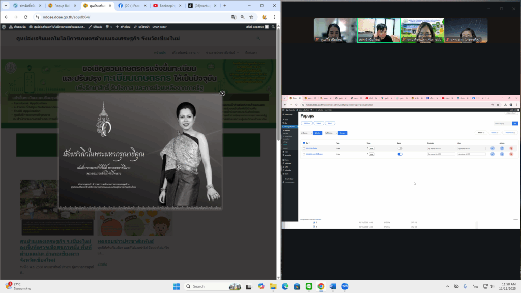 วันที่ 11 พ.ย. 2568 นายธราทิพย์ ปาวะระ ผู้อำนวยการศูนย์ส่งเสริมเทคโนโลยีการเกษตรด้านแมลงเศรษฐกิจ จ.เชียงใหม่ มอบหมายให้ นางสาวเอื้องชัน ไชยธง นักวิชาการส่งเสริมการเกษตร เข้ารับการฝึกอบรมพัฒนาเว็บไซต์ด้วย WordPress สำหรับหน่วยงานภายใต้สังกัดสำนักงานส่งเสริมและพัฒนาการเกษตรที่ 6 จังหวัดเชียงใหม่ กรมส่งเสริมการเกษตร ผ่านระบบออนไลน์ Zoom Meeting เพื่อเป็นการเสริมสร้างความรู้ ทักษะ และความสามารถในการสร้างพัฒนาและจัดการเว็บไซต์ของหน่วยงานให้มีประสิทธิภาพ ให้แก่เจ้าหน้าที่ผู้รับผิดชอบงานพัฒนาเว็บไซต์ ของศูนย์ปฏิบัติการ ทั้ง 14 ศูนย์
