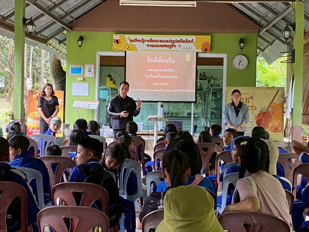 วันที่ 18 พ.ย. 2568 นายธราทิพย์ ปาวะระ ผู้อำนวยการศูนย์ส่งเสริมเทคโนโลยีการเกษตรด้านแมลงเศรษฐกิจ จ.เชียงใหม่ มอบหมายให้ เจ้าหน้าที่นักวิชาการศูนย์ฯ ถ่ายทอดองค์ความรู้ การเลี้ยงแมลงเศรษฐกิจ ได้แก่ ผึ้งพันธุ์ ชันโรง จิ้งหรีด ให้กับนักเรียนชั้นอนุบาลปีที่ 2 – ระดับชั้นประถมศึกษาปีที่ 6 คณะครู และผู้ปกครอง โรงเรียนบ้านแม่อมลอง ตำบลบ่อสลี อำเภอฮอด จังหวัดเชียงใหม่ รวมจำนวน 55 คน แบ่งเป็นนักเรียน 37 คน คุณครู 9 คน และผู้ปกครอง 9 คน เพื่อเป็นการส่งเสริมให้นักเรียนได้พัฒนาการเรียนรู้จากประสบการณ์จริงนอกห้องเรียน ณ ศูนย์ส่งเสริมเทคโนโลยีการเกษตรด้านแมลงเศรษฐกิจ จ.เชียงใหม่