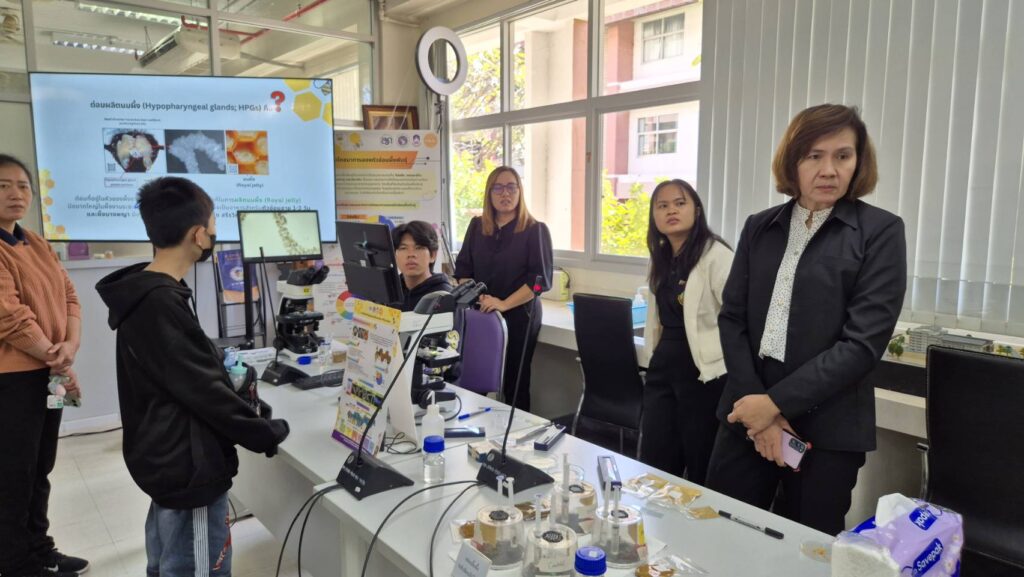 วันที่ 25 พ.ย. 2568 นายธราทิพย์ ปาวะระ ผู้อำนวยการศูนย์ส่งเสริมเทคโนโลยีการเกษตรด้านแมลงเศรษฐกิจ จ.เชียงใหม่ มอบหมายให้ นางสาวกนกวรรณ เนียมทรัพย์ และนางกิ่งกาญจน์ ชัยการ นักวิชาการส่งเสริมการเกษตรชำนาญการ เข้าร่วมกิจกรรมอบรมเชิงปฏิบัติการ เรื่อง “การใช้เกสรเทียมสูตรโปรตีนทางเลือกจากเนื้อสัตว์เพื่อเสริมสุขภาพและเพิ่มประสิทธิภาพการผลิตผึ้งพันธุ์” โครงการเทคโนโลยีการผลิตอาหารเกสรเทียมเลี้ยงผึ้งและการผลิตตัวอ่อนผึ้งพันธุ์เชิงพาณิชย์ เพื่อเพิ่มรายได้ให้แก่เกษตรกรในพื้นที่ภาคเหนือ ภายใต้การสนับสนุนทุนจาก สำนักงานพัฒนาการวิจัยการเกษตร (องค์การมหาชน) ปีงบประมาณ 2568 นำทีมโดย ดร.บาจรีย์ ฉัตรทอง ภาควิชากีฏวิทยาและโรคพืช คณะเกษตรศาสตร์ มหาวิทยาลัยเชียงใหม่ เป็นหัวหน้าโครงการฯ ณ ห้องประชุม 1 คณะเกษตรศาสตร์และทรัพยากรธรรมชาติ มหาวิทยาลัยพะเยา