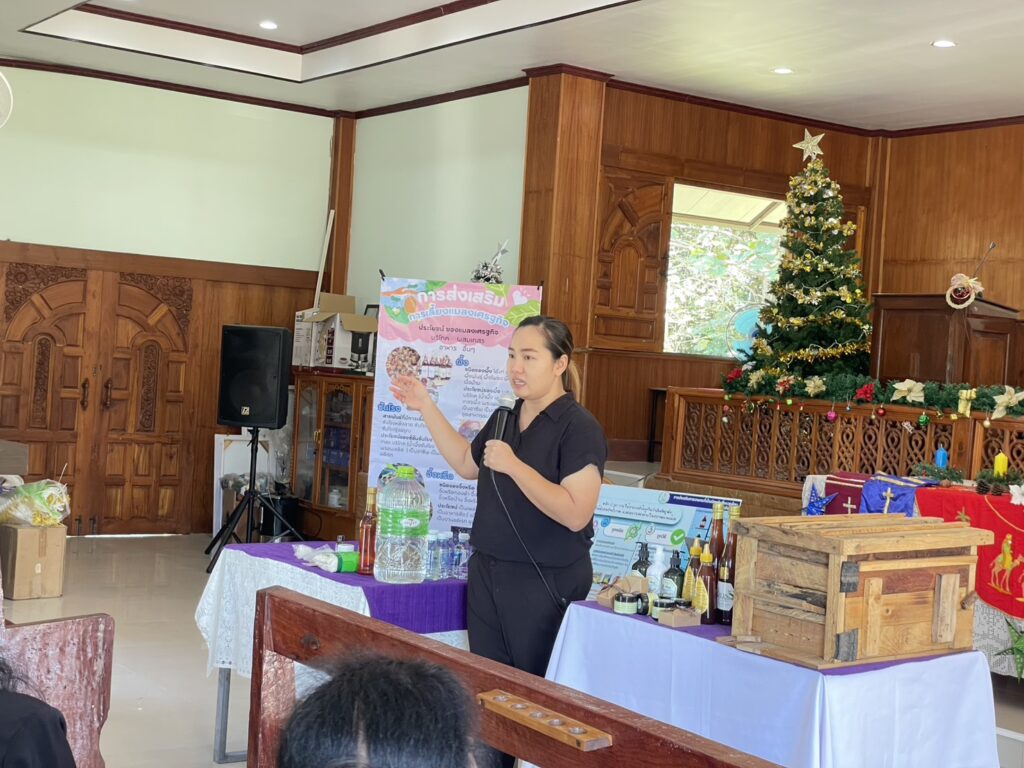 เพื่อพัฒนาความรู้ด้านการผลิตแมลงเศรษฐกิจและเพิ่มศักยภาพให้แก่เกษตรกร ณ กลุ่มวิสาหกิจชุมชนส่งเสริมการเลี้ยงผึ้งโพรงคริสตจักรสันต้นปิน ตำบลแม่นาวาง อำเภอแม่อาย จังหวัดเชียงใหม่