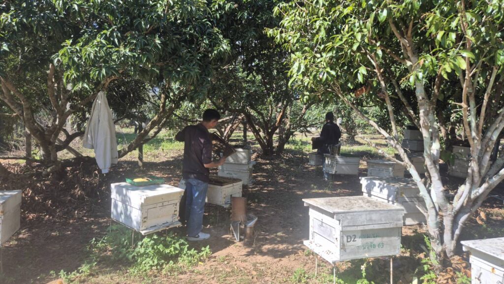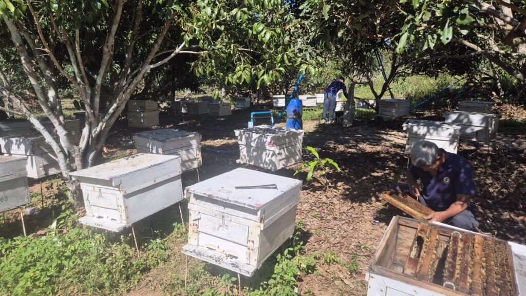 วันที่ 6 ม.ค. 2569 นายธราทิพย์ ปาวะระ ผู้อำนวยการศูนย์ส่งเสริมเทคโนโลยีการเกษตรด้านแมลงเศรษฐกิจ จ.เชียงใหม่ มอบหมายให้ นางสาวกนกวรรณ เนียมทรัพย์ นักวิชาการส่งเสริมการเกษตรชำนาญการ พร้อมด้วยเจ้าหน้าที่ศูนย์ฯ ลงพื้นที่ดำเนินการเช็คสุขภาพผึ้ง ในพื้นที่ตำบลแม่นะ อำเภอเชียงดาว จังหวัดเชียงใหม่ เพื่อตรวจดูประชากรผึ้งภายในรัง และการพัฒนาของรังในพื้นที่ดังกล่าว ตลอดจนพืชในพื้นที่จะได้รับการช่วยผสมเกสรจากผึ้ง ทำให้ผลผลิตที่ได้มีปริมาณและคุณภาพที่ดียิ่งขึ้น เกษตรกรเกิดรายได้ที่แน่นอน และส่งผลให้ระบบนิเวศเกิดความยั่งยืนต่อไป