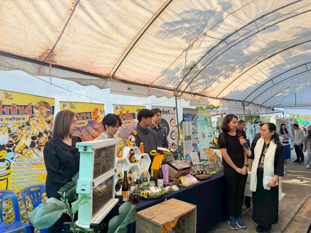 วันที่ 22 ม.ค. 2569 นายธราทิพย์ ปาวะระ ผู้อำนวยการศูนย์ส่งเสริมเทคโนโลยีการเกษตรด้านแมลงเศรษฐกิจ จ.เชียงใหม่ พร้อมด้วย ทีมเจ้าหน้าที่ศูนย์ฯ ร่วมงานและจัดนิทรรศการในงานครบรอบ 61 ปี การก่อตั้งสถานีวิทยุกระจายเสียงมหาวิทยาลัยเกษตรศาสตร์ จังหวัดเชียงใหม่ (สถานีวิทยุ ม.ก. เชียงใหม่) เพื่อเป็นการรำลึกถึงวันสำคัญแห่งการก่อตั้ง ประจำปี พ.ศ. 2569 ภายใต้ชื่องาน “วันครอบครัว ม.ก. เชื่อมโยงทุกกลุ่มเป้าหมาย เพื่อความยั่งยืน (KU Radio Family Day : Connecting All Stakeholders for Sustainability)”