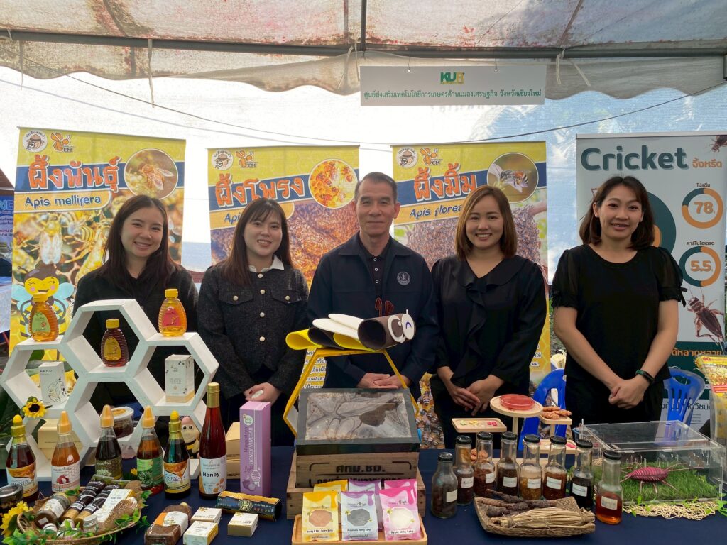 ทั้งนี้ ศูนย์ฯ แมลงเศรษฐกิจ จังหวัดเชียงใหม่ ได้จัดนิทรรศการการส่งเสริมการเลี้ยงแมลงเศรษฐกิจ ได้แก่ ผึ้งพันธุ์ ผึ้งโพรง ชันโรง ครั่ง จิ้งหรีด และการแปรรูปผลิตภัณฑ์จากผึ้ง ให้เกษตรกรและผู้ที่สนใจที่เข้าร่วมงาน