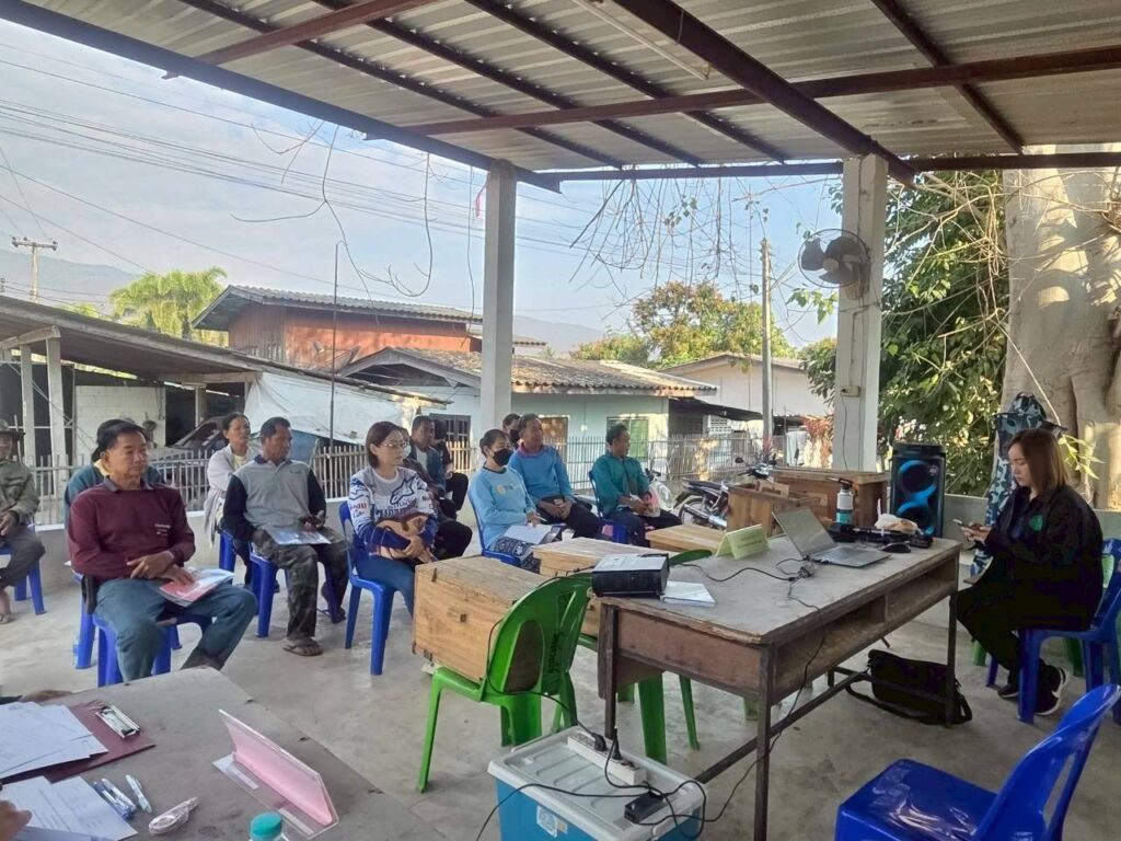 วันที่ 29 ม.ค. 2569 นายธราทิพย์ ปาวะระ ผู้อำนวยการศูนย์ส่งเสริมเทคโนโลยีการเกษตรด้านแมลงเศรษฐกิจ จังหวัดเชียงใหม่ มอบหมายให้ นางกิ่งกาญจน์ ชัยการ นักวิชาการส่งเสริมการเกษตรชำนาญการ เป็นวิทยากรถ่ายทอดองค์ความรู้ การเลี้ยงผึ้งโพรง ให้กับเกษตรกรบ้านห้วยโจ้ โครงการประชุมเชิงปฏิบัติการ การส่งเสริมอาชีพและการตลาดภายใต้โครงการจัดที่ดินทำกินให้ชุมชนตามนโยบายรัฐบาล เขตพื้นที่ป่าจอมทอง ประจำปีงบประมาณ พ.ศ. 2569 เพื่อส่งเสริมพัฒนาอาชีพและส่งเสริมด้านการตลาดแก้เกษตรกรให้มีรายได้เพียงพอต่อการดำรงชีพ และมีคุณภาพชีวิตที่ดีขึ้น และสนับสนุนให้เกิดการรวมกลุ่มตามความเหมาะสมของพื้นที่ ชุมชนเกิดความเข้มแข็ง โดยเกษตรกรที่เข้าร่วมอบรมได้รับการจัดสรรที่ดินทำกินตามนโยบายรัฐบาล จำนวน 12 ราย ณ ศาลากลางหมู่บ้านห้วยโจ้ ตำบลสบเตี๊ยะ อำเภอจอมทอง จังหวัดเชียงใหม่