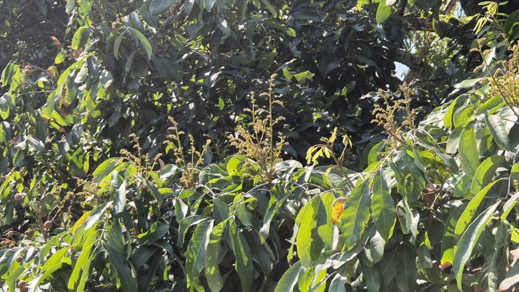 วันที่ 3 ก.พ. 2569 นายธราทิพย์ ปาวะระ ผู้อำนวยการศูนย์ส่งเสริมเทคโนโลยีการเกษตรด้านแมลงเศรษฐกิจ จังหวัดเชียงใหม่ มอบหมายให้ นางสาวกนกวรรณ เนียมทรัพย์ นักวิชาการส่งเสริมการเกษตรชำนาญการ พร้อมด้วยเจ้าหน้าที่นักวิชาการศูนย์ฯ ลงพื้นที่สำรวจและติดตามสถานการณ์การออกดอกของลำไยแหล่งพืชอาหารผึ้ง ฤดูกาลผลิตปี พ.ศ. 2569 ดังนี้ พื้นที่จังหวัดเชียงใหม่ ได้แก่ อำเภอสารภี อำเภอหางดง และอำเภอสันป่าตอง พบว่า ต้นลำไยอยู่ในช่วงระยะกำลังแทงช่อดอกถึงระยะดอกบาน โดยต้นลำไยส่วนใหญ่อยู่ระยะกำลังแทงช่อดอกยาว 5 – 10 เซนติเมตร คาดว่าดอกลำไยส่วนใหญ่จะเริ่มบานประมาณปลายเดือนกุมภาพันธ์ พ.ศ. 2569