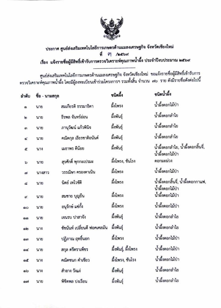 ประกาศรายชื่อผู้มีสิทธิ์เข้ารับการตรวจวิเคราะห์คุณภาพน้ำผึ้ง ประจำปีงบประมาณ 2569By aopdb04 / 2 มีนาคม 2026