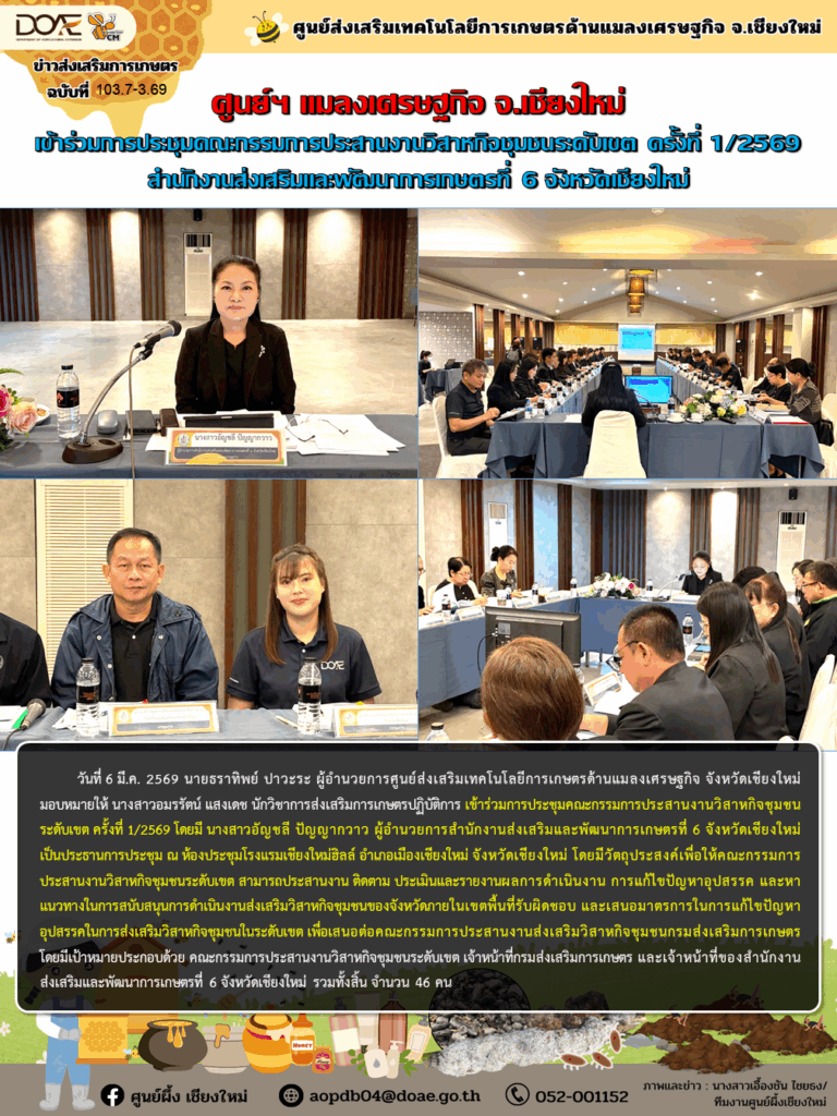 ศูนย์ฯ แมลงเศรษฐกิจ จ.เชียงใหม่ เข้าร่วมการประชุมคณะกรรมการประสานงานวิสาหกิจชุมชนระดับเขต ครั้งที่ 1/2569 สำนักงานส่งเสริมและพัฒนาการเกษตรที่ 6 จังหวัดเชียงใหม่