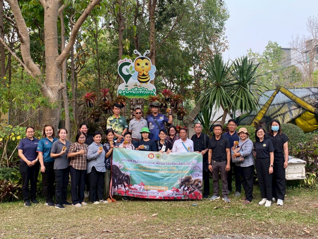 วันที่ 31 มี.ค. 2569 นายธราทิพย์ ปาวะระ ผู้อำนวยการศูนย์ส่งเสริมเทคโนโลยีการเกษตรด้านแมลงเศรษฐกิจ จังหวัดเชียงใหม่ มอบหมายให้ นางสาวเปรมอร ธัมมะ นักวิชาการส่งเสริมการเกษตรชำนาญการ และทีมนักวิชาการศูนย์ฯ ร่วมกับกองส่งเสริมการเกษตร เทศบาลตำบลต้นธง อำเภอเมือง จังหวัดลำพูน อบรมให้ความรู้ การเลี้ยงผึ้งโพรงและชันโรง ณ ศูนย์ส่งเสริมเทคโนโลยีการเกษตรด้านแมลงเศรษฐกิจ จังหวัดเชียงใหม่ ภายใต้โครงการฝึกอบรมการส่งเสริมและพัฒนาอาชีพเลี้ยงสัตว์ ประจำปี 2569 กิจกรรมการเลี้ยงผึ้งโพรงและชันโรงเสริมรายได้ เพื่อสร้างสมดุลในธรรมชาติ เพิ่มผลผลิตพืช สร้างรายได้ และส่งเสริมเกษตรกรรมที่ยั่งยืนต่อไป