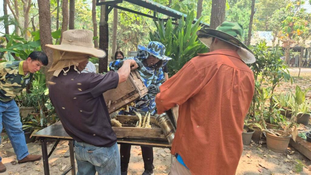 ศูนย์ฯ แมลงเศรษฐกิจ จ.เชียงใหม่ ร่วมกับกองส่งเสริมการเกษตร เทศบาลตำบลต้นธง จังหวัดลำพูน อบรมให้ความรู้ การเลี้ยงผึ้งโพรงและชันโรง