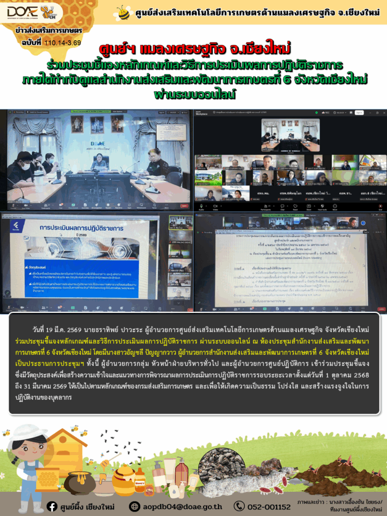 ข่าวประชาสัมพันธ์ศูนย์ฯ แมลงเศรษฐกิจ จ.เชียงใหม่เข้า ร่วมการประชุมคณะทำงานโครงการเกษตรวิชญาระดับพื้นที่ ครั้งที่ 1/2569 aopdb04 / 16 มีนาคม 2026 วันที่ 16 มี.ค. 2569