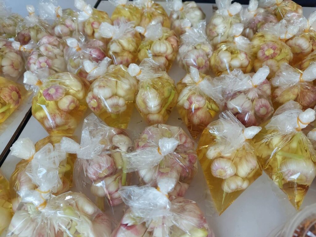 ระหว่างวันที่ 27 กุมภาพันธ์ 2569 นายสมชาย กันธะวงค์ ผู้อำนวยการศูนย์ส่งเสริมและพัฒนาอาชีพการเกษตรจังหวัดเชียงใหม่ มอบหมายให้นายเทวา อินทราวุธ นักวิชาการส่งเสริมการเกษตร เป็นวิทยากรถ่ายทอดความรู้เรื่องการการแปรรูปการทำ น้ำพริกคั่วทราย กระเทียมดองสามรส ให้แก่เกษตรกร จำนวน 30 ราย ตามโครงการส่งเสริมเกษตรกรประจำปีงบประมาณ 2569 ระบบส่งเสริมเกษตรแบบแปลงใหญ่ (แปลงกระเทียม) จัดโดยสำนักงานเกษตรอำเภอสะเมิง จังหวัดเชียงใหม่