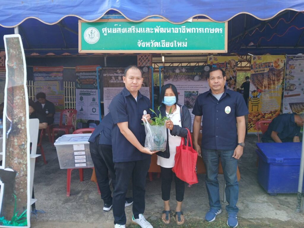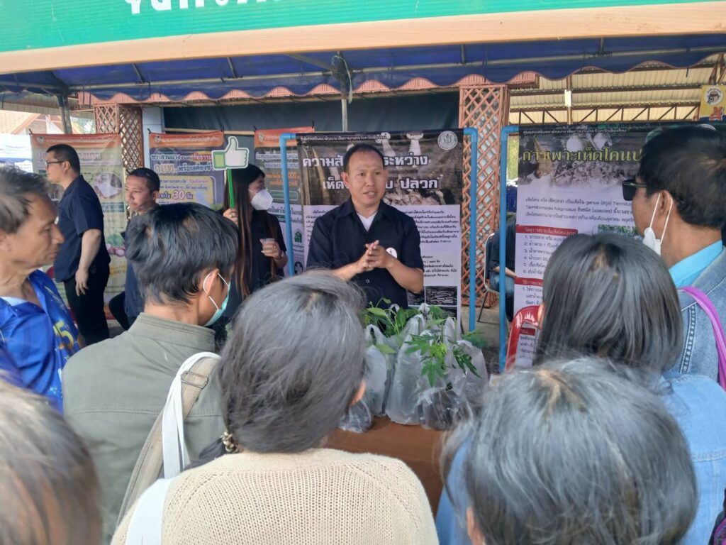 โดยทางศูนย์ฯ  ได้จัดนิทรรศการ และบรรยายถ่ายทอดความรู้ในเรื่อง การเพาะเห็ดโคนปลวกจากวัสดุเหลือใช้ทางการเกษตรและการผลิตพืชผักสมุนไพรให้แก่เกษตรกรผู้เข้าาร่วมงาน พร้อมทั้งสนับสนุนปัจจัยการผลิต  พริก มะละกอฮอลแลน จำนวน 200 ต้น ให้แก่เกษตรกรผู้เข้าร่วมงาน 100 คน เพื่อนำไปปลูกไว้บริโภคในแปลงเกษตรของตนเอง สามารถลดรายจ่าย เพิ่มรายได้ในครัวเรือน ต่อไป