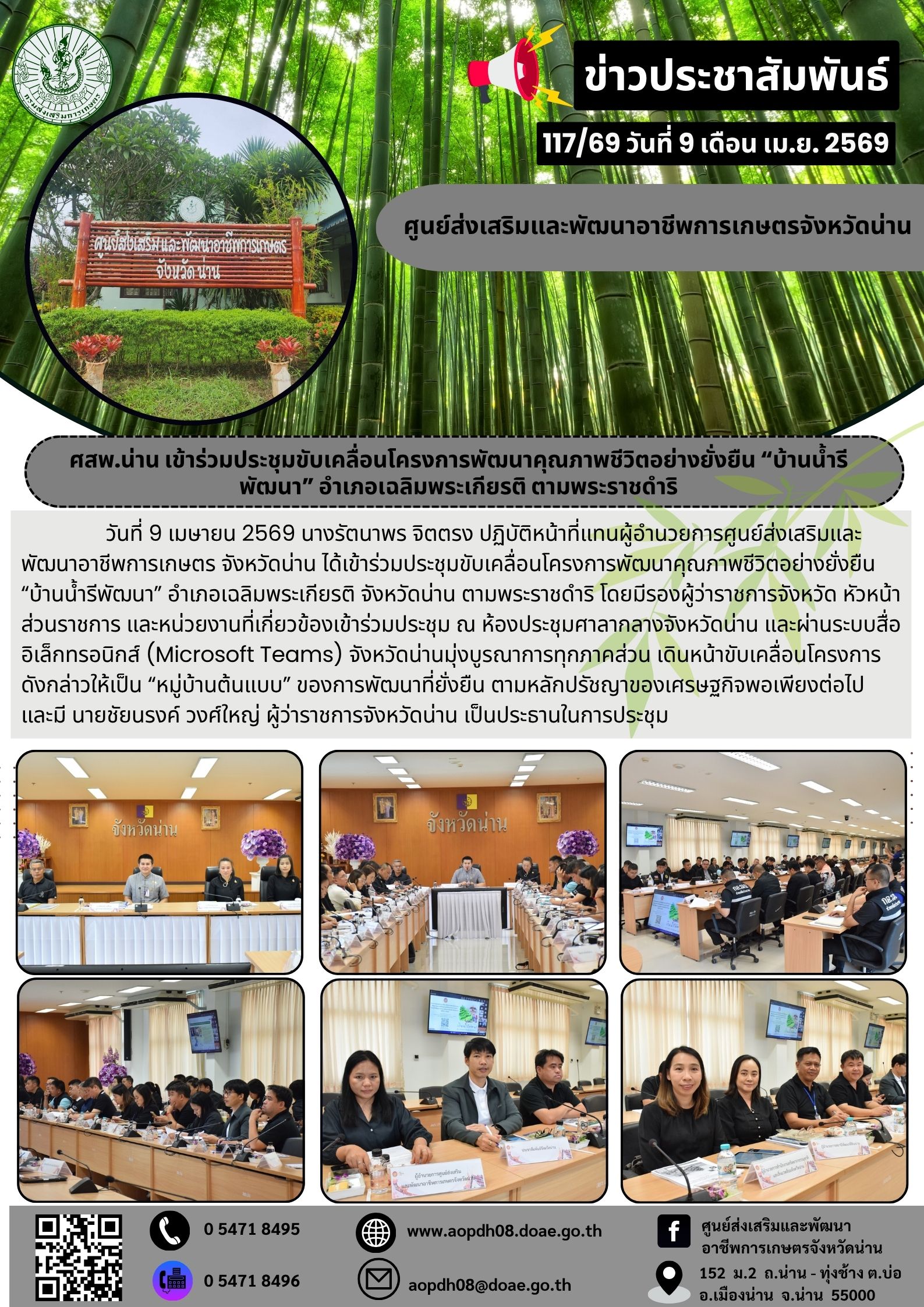 ศสพ.น่าน ร่วมประชุมขับเคลื่อนโครงการ “บ้านน้ำรีพัฒนา” สู่หมู่บ้านต้นแบบอย่างยั่งยืน