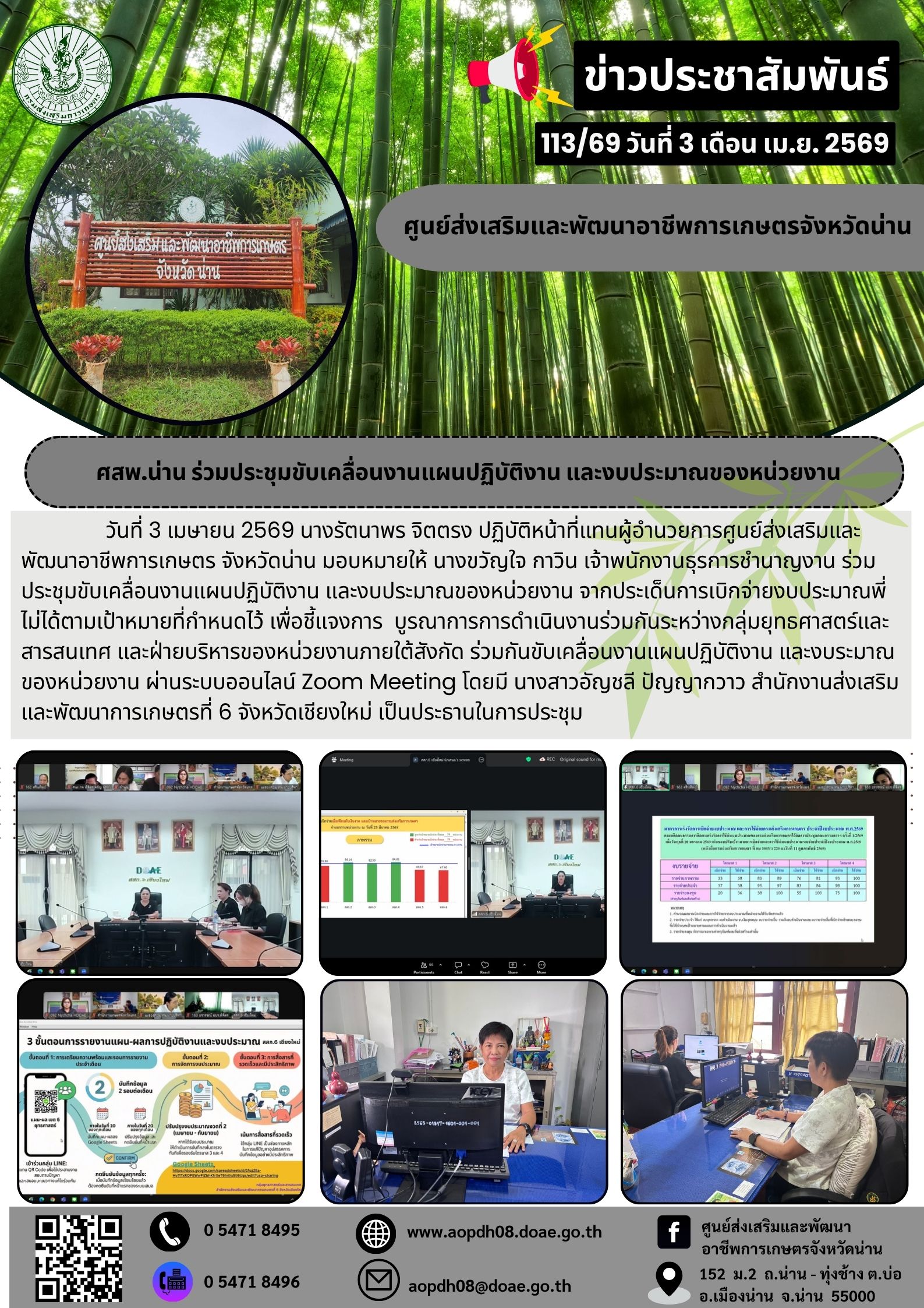 ศสพ.น่าน ร่วมประชุมขับเคลื่อนงานแผนปฏิบัติงาน และงบประมาณของหน่วยงาน