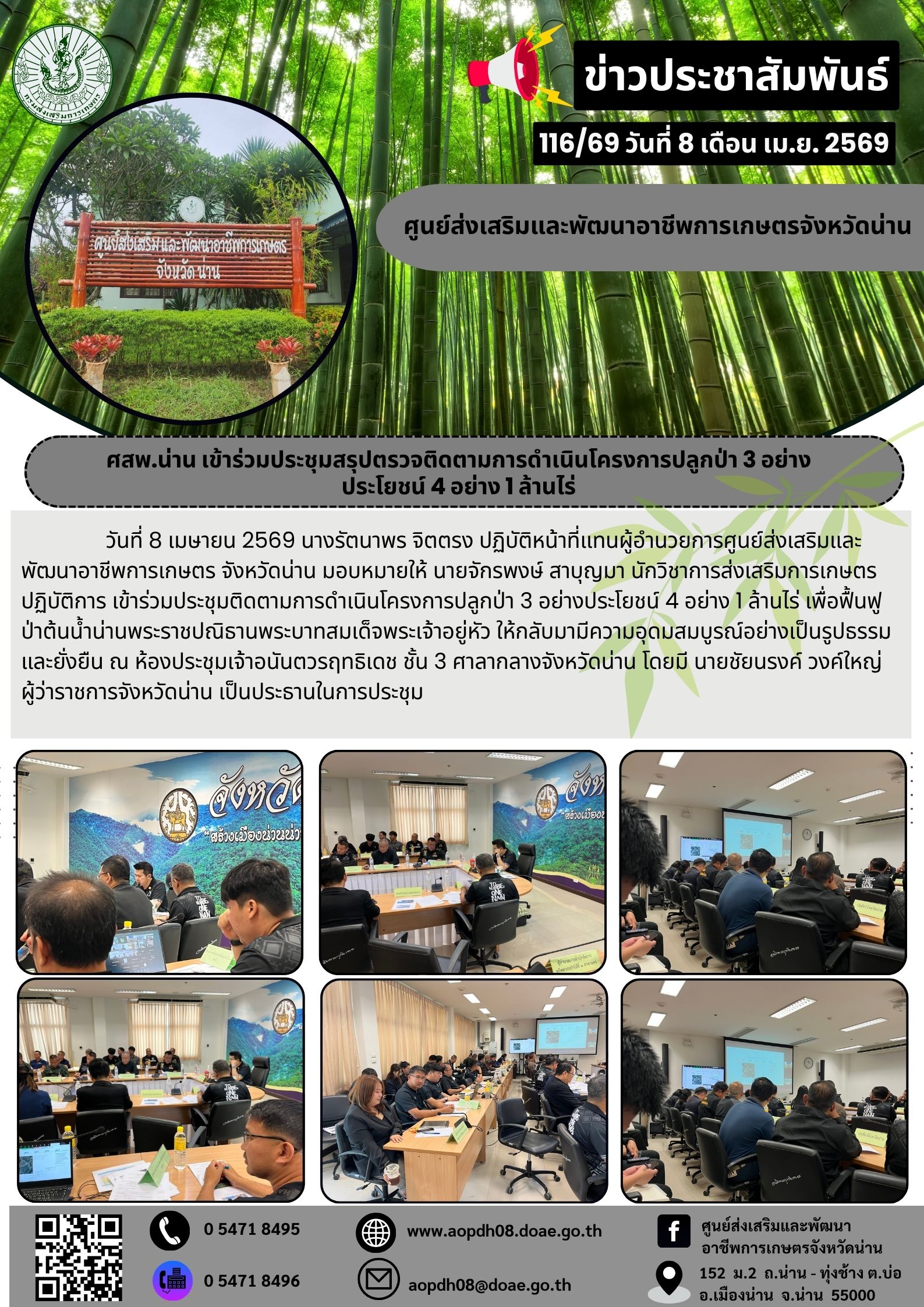 ศสพ.น่าน เข้าร่วมประชุมสรุปตรวจติดตามการดำเนินโครงการปลูกป่า 3 อย่าง ประโยชน์ 4 อย่าง 1 ล้านไร่