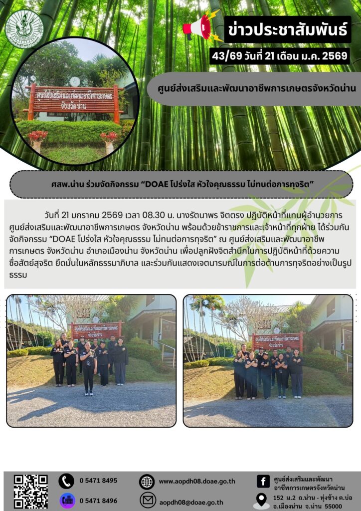 ศสพ.น่าน จัดกิจกรรม “DOAE โปร่งใส หัวใจคุณธรรม ไม่ทนต่อการทุจริต”