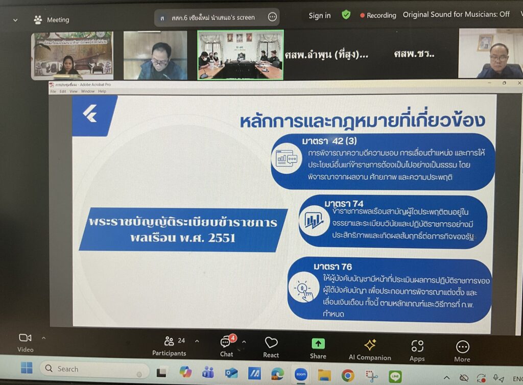 นางรัตนาพร จิตตรง ปฏิบัติหน้าที่แทนผู้อำนวยการศูนย์ส่งเสริมและพัฒนาอาชีพการเกษตร จังหวัดน่าน พร้อมด้วยเจ้าหน้าที่ ศสพ.น่าน เข้าร่วมประชุมชี้แจงหลักเกณฑ์และวิธีการประเมินผลการปฏิบัติราชการ ครั้งที่ 1/2569 ผ่านระบบออนไลน์ Zoom Meeting ![]()