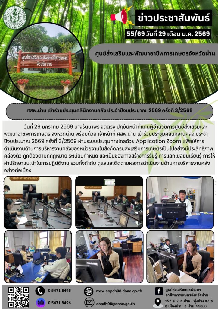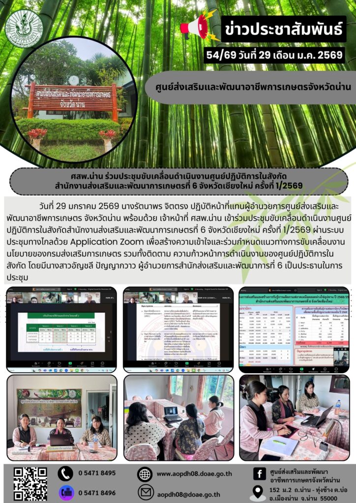 ข่าวประชาสัมพันธ์ศสพ.น่าน ร่วมประชุมขับเคลื่อนดำเนินงานศูนย์ปฏิบัติการในสังกัด aopdh08 / 29 มกราคม 2026 สำนักงานส่งเสริมและพ