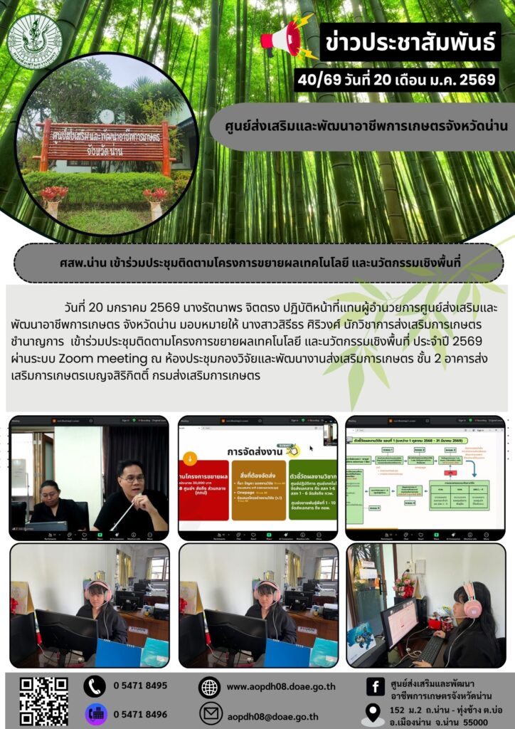 ข่าวประชาสัมพันธ์ศสพ.น่าน ร่วมประชุมเพื่อเตรียมความพร้อมการจัดนิทรรศการและออกร้านของหน่วยงานสังกัด aopdh08 / 20 มกราคม 2026 กระทรวงเกษตรและ ข่าว