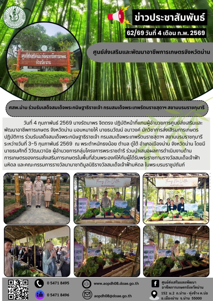 ข่าวประชาสัมพันธ์ศสพ.น่าน ร่วมรับเสด็จ สมเด็จพระกนิษฐาธิราชเจ้า กรมสมเด็จพระเทพรัตนราชสุดาฯ สยามบรมราชกุมารี aopdh08 / 3 กุมภาพันธ์ 2026 วันที่ 3 กุมภาพันธ์