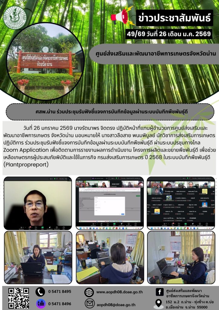 ข่าวประชาสัมพันธ์, ไม่มีหมวดหมู่ศสพ.น่าน ร่วมประชุมรับฟังชี้แจงการบันทึกข้อมูลผ่านระบบบันทึกพืชพันธุ์ดี aopdh08 / 26 มกราคม 2026 📢🌱 ข่าวประชาสัมพันธ์