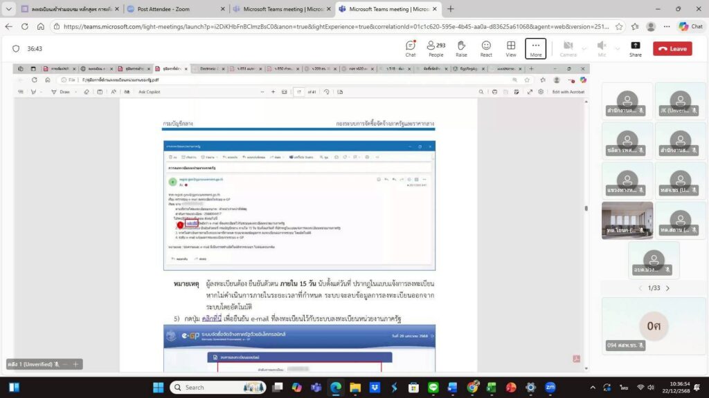 วันที่ 22 ธันวาคม 2568 เวลา 09.00 น. นางพรรณี สุขใส ผู้อำนวยการศูนย์ส่งเสริมและพัฒนาอาชีพการเกษตรจังหวัดเชียงราย มอบหมายให้เจ้าหน้าที่ศูนย์ฯ เข้าร่วมโครงการฝึกอบรม หลักสูตร การเพิ่มประสิทธิภาพการจัดซื้อจัดจ้างด้วยวิธีการทางอิเล็กทรอนิกส์ (Electronic Government Procurement : e-GP) สำหรับเจ้าหน้าที่ผู้ปฏิบัติงานของหน่วยงานของรัฐในส่วนภูมิภาค ผ่านระบบออนไลน์ Zoom Meeting. ณ ศูนย์ส่งเสริมและพัฒนาอาชีพการเกษตรจังหวัดเชียงราย เพื่อให้ผู้ปฏิบัติงานเกี่ยวกับการจัดซื้อจัดจ้างของหน่วยงานของรัฐในส่วนภูมิภาค มีความรู้ ความเข้าใจเกี่ยวกับการใช้งานระบบ e-GP รวมถึงวิธีการจัดซื้อจัดจ้างด้วยวิธิอิเล็กทรอนิกส์ที่ปรับปรุงใหม่ได้อย่างถูกต้องและมีประสิทธิภาพต่อไป