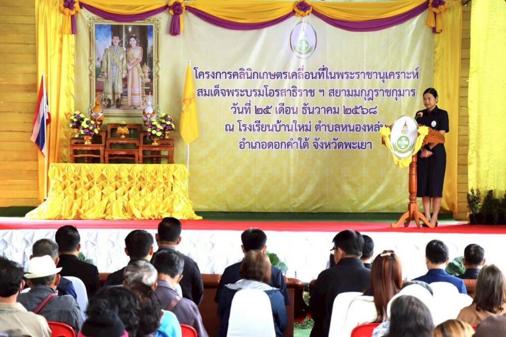 วันที่ 25 ธันวาคม 2568 เวลา 08.30 น. นางพรรณี สุขใส ผู้อำนวยการศูนย์ส่งเสริมและพัฒนาอาชีพการเกษตรจังหวัดเชียงราย มอยหมายให้เจ้าหน้าที่ศูนย์ฯ เข้าร่วมงานโครงการคลินิกเกษตรเคลื่อนที่ในพระราชานุเคราะห์ สมเด็จพระบรมโอรสาธิราชฯ สยามมกุฎราชกุมาร ไตรมาสที่ 1 ประจำปีงบประมาณ พ.ศ.2569 เพื่อให้เกษตรกรที่มีปัญหาด้านการเกษตรในพื้นที่ห่างไกล สามารถเข้าถึงการบริการทางวิชาการและได้รับการแก้ไขปัญหาด้านการเกษตรอย่างครบวงจรในคราวเดียวกัน ซึ่งศูนย์ฯได้จัดแสดงนิทรรศการการใช้วัสดุเหลือใช้ทางการเกษตร ลดการเผา และสนับสนุนกล้าพันธุ์มะเขือยาว 500 ต้น มะเขือเปราะ 200 ต้น ต้นพริกขี้หนู 200 ต้น อีกทั้งสนับสนุนเมล็ดพันธุ์ผักกระเจี๊ยบ 100 ซอง และเมล็ดพันธุ์ถั่วฝักยาวไร้ค้าง 100 ซอง เพื่อเป็นปัจจัยการผลิตแก่เกษตรกรที่ร่วมงานฯ โดยมีนางสาวอรอาภา โล่ห์วีระ ผู้ว่าราชการจังหวัดพะเยา เป็นประธานกล่าวเปิดกิจกรรมฯ ณ โรงเรียนบ้านใหม่ ตำบลหนองหล่ม อำเภอดอกคำใต้ จังหวัดพะเยา