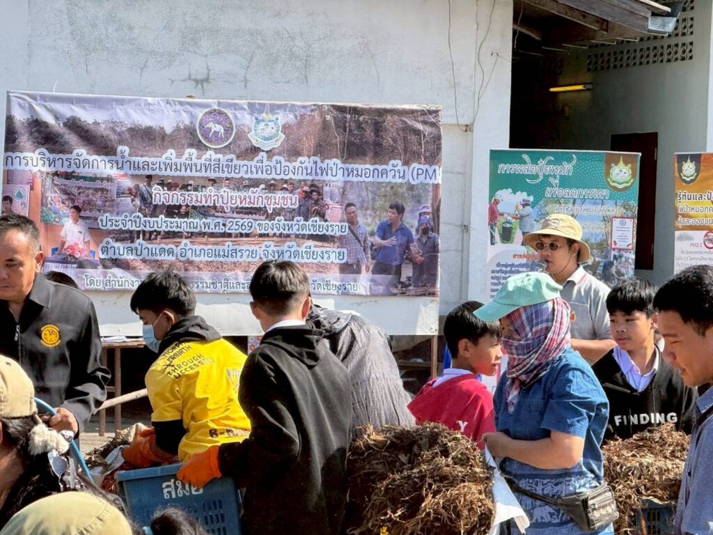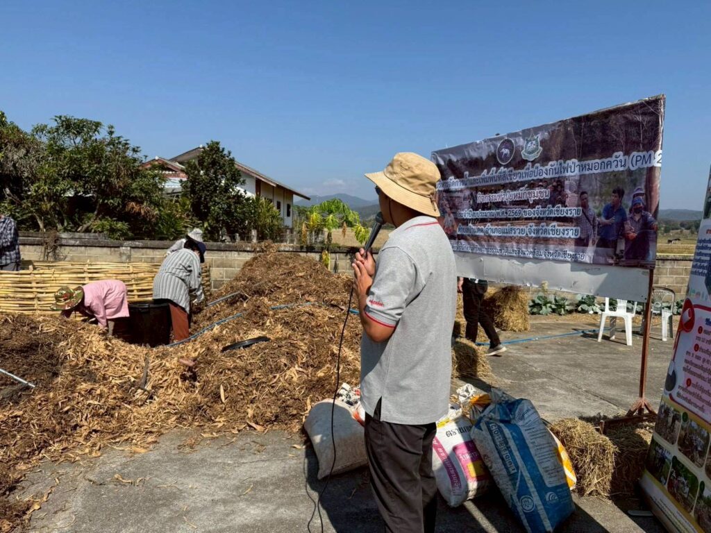 วันที่ 12 มกราคม 2569 เวลา 08.30 น. นางพรรณี สุขใส ผู้อำนวยการศูนย์ส่งเสริมและพัฒนาอาชีพการเกษตรจังหวัดเชียงราย มอบหมายให้นายณัฐกุล บุญวงศ์ นักวิชาการส่งเสริมการเกษตรชำนาญการ ร่วมเป็นวิทยากรบรรยายให้ความรู้และสาธิต ในกิจกรรมการอบรมทำปุ๋ยหมักชุมชน ในหัวข้อ “การทำปุ๋ยหมักและสาธิตการทำปุ๋ยหมัก” ภายใต้โครงการบริหารจัดการน้ำและเพิ่มพื้นที่สีเขียวเพื่อป้องกันไฟป่า หมอกควัน (PM 2.5) กิจกรรมหลัก การป้องกันและเตรียมการเผ้าระวังการเกิดปัญหาหมอกควันและฝุ่นละอองขนาดเล็ก PM 2.5 เชิงพื้นที่ตามแผนปฏิบัติราชการประจำปีงบประมาณ พ.ศ.2569 ซึ่งจัดโดยสำนักงานทรัพยากรธรรมชาติและสิ้่งแวดล้อมจังหวัดเชียงราย ณ พื้นที่หมู่ที่ 13 ตำบลป่าแดด อำเภอแม่สรวย จังหวัดเชียงราย