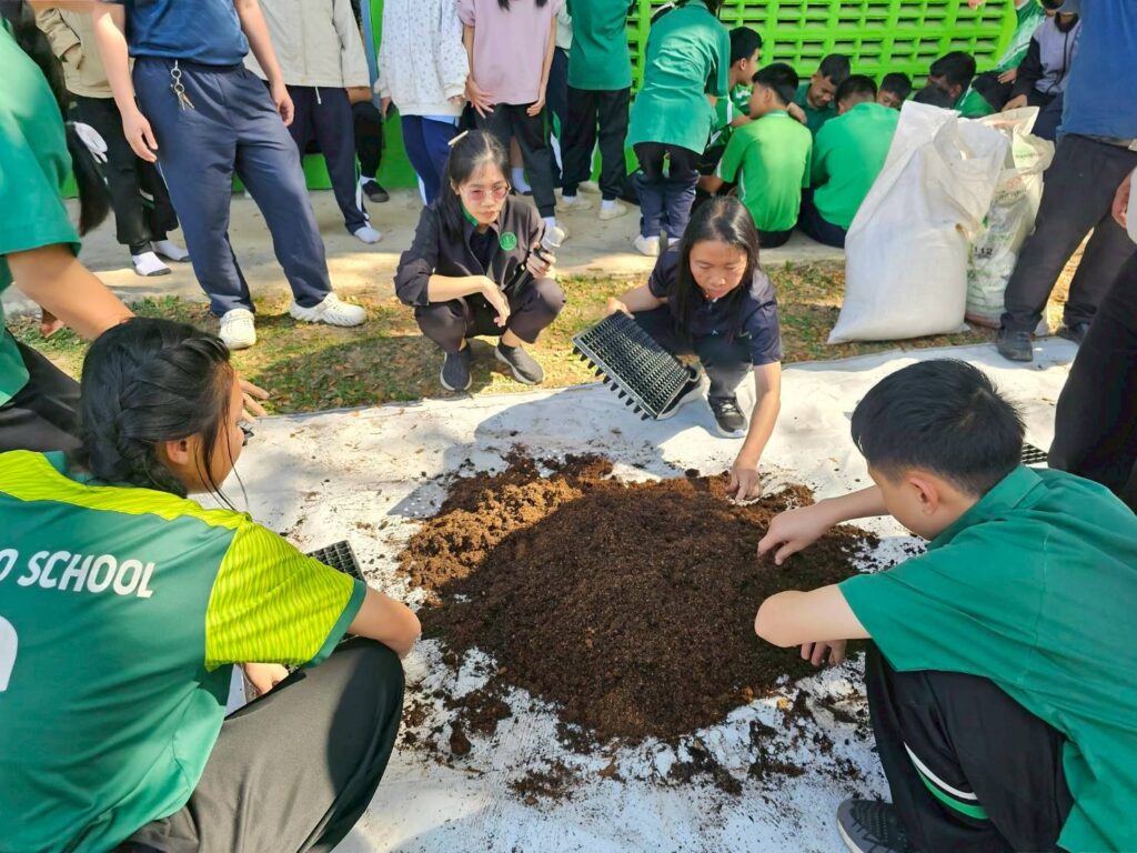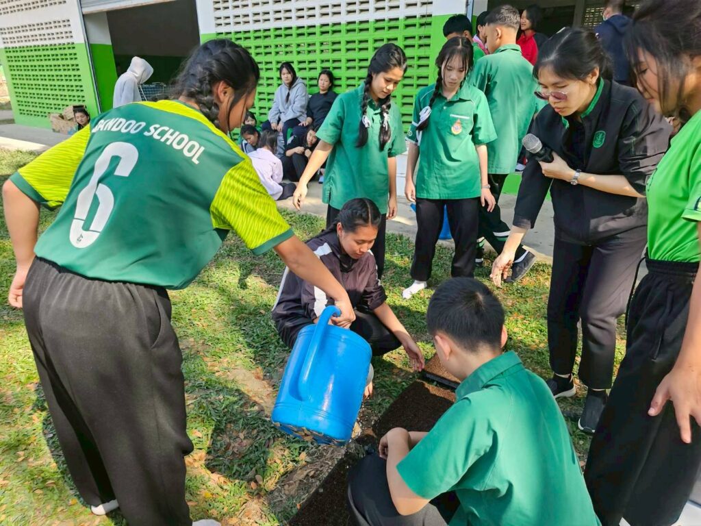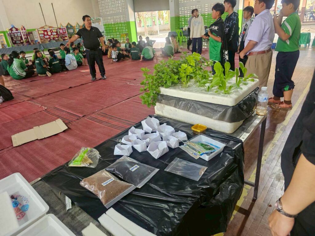 วันที่ 27-28 มกราคม 2569 นางพรรณี สุขใส ผู้อำนวยการศูนย์ส่งเสริมและพัฒนาอาชีพการเกษตรจังหวัดเชียงราย มอบหมายให้เจ้าหน้าที่ศูนย์ฯ ร่วมเป็นวิทยากรบรรยายและสาธิต ในหัวข้อ การปลูกพืชผักสวนครัว ผักไร้ดิน เห็ดนางฟ้าภูฐาน ภายใต้โครงการอบรมเชิงปฏิบัติการ “เกษตรอินทรีย์ 9 ฐาน การเรียนรู้ 9 สู่ความยั่งยืน” สำหรับนักเรียนชั้นประถมศึกษาปีที่ 4-ระดับชั้นมัธยมศึกษาปีที่ 3 จัดโดยโรงเรียนบ้านดู่ (สหราษฎร์พัฒนาคาร) เพื่อส่งเสริมการพึ่งหาตนเองอย่างยั่งยืน และช่วยเสริมสร้างทักษะให้กับนักเรียนได้อย่างมีประสิทธิภาพ ณ อาคารศูนย์พละศึกษา โรงเรียนบ้านดู่ (สหราษฎร์พัฒนาคาร) ตำบลบ้านดู่ อำเภอเมืองเชียงราย จังหวัดเชียงราย