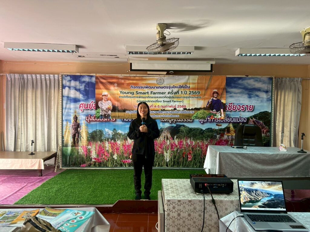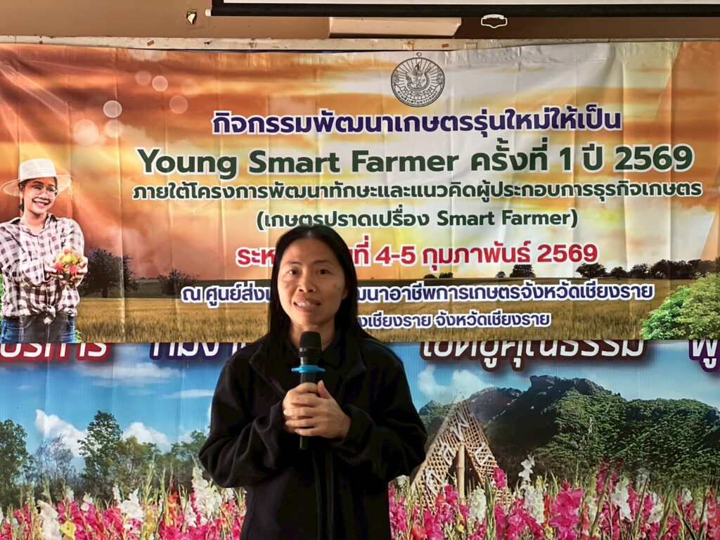 วันที่ 4-5 กุมภาพันธ์ 2569 นางพรรณี สุขใส ผู้อำนวยการศูนย์ส่งเสริมและพัฒนาอาชีพการเกษตรจังหวัดเชียงราย มอบหมายให้เจ้าหน้าที่ศูนย์ฯ ร่วมต้อนรับและเป็นวิทยากรให้ความรู้แก่คณะเกษตรกรรุ่นใหม่ จำนวน 33 ราย ภายใต้กิจกรรมพัฒนาเกษตรกรรุ่นใหม่ให้เป็น Young Smart Farmer ครั้งที่ 1 ประจำปี 2569 ภายให้โครงการพัฒนาทักษะและแนวคิดผู้ประกอบการธุรกิจเกษตร (เกษตรปราดเปรื่อง (Smart Farmer)) จัดโดยสำนักงานจังหวัดเชียงราย ซึ่งมีวัตถุประสงค์เพื่อพัฒนาเกษตรกรรุ่นใหม่ให้สามารถทดแทนเกษตรกรผู้สูงอายุ และสร้างแรงจูงใจให้คนรุ่นใหม่ทันมาประกอบอาชีพเกษตรกรรม โดยเน้นกระบวนการแลกเปลื่ยนเรียนรู้และสร้างเครือข่าย ณ ศูนย์ส่งเสริมและพัฒนาอาชีพการเกษตรจังหวัดเชียงราย ตำบลป่าอ้อดอนชัย อำเภอเมืองเชียงราย จังหวัดเชียงราย