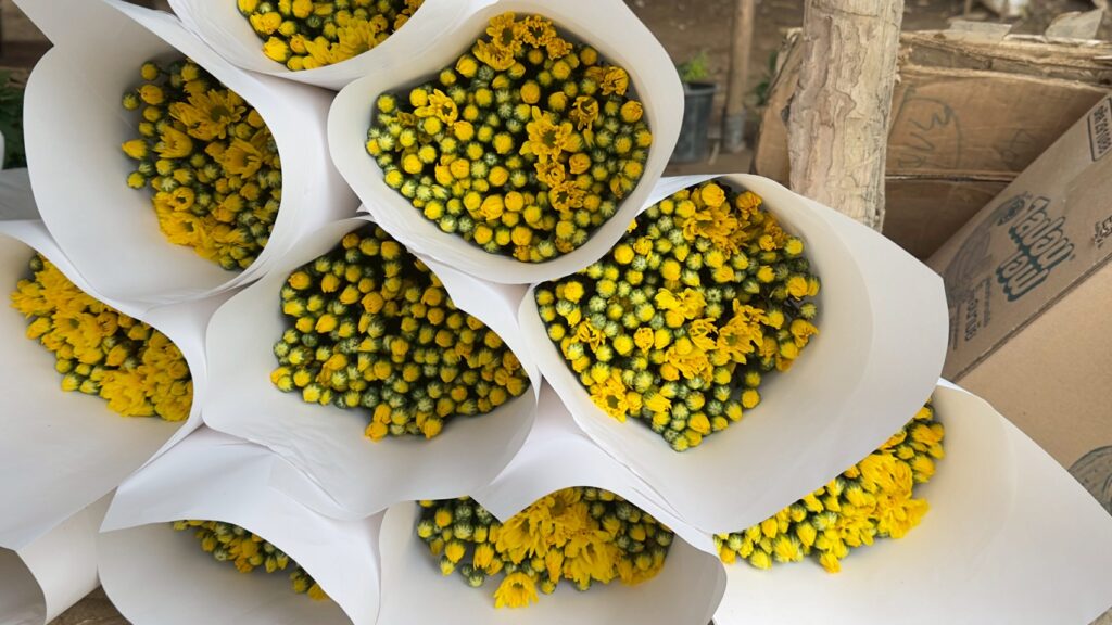 วันที่ 23 กุมภาพันธ์ 2569 เวลา 09.00 น. นางพรรณี สุกใส ผู้อำนวยการศูนย์ส่งเสริมและพัฒนาอาชีพการเกษตรจังหวัดเชียงราย มอบหมายให้ เจ้าหน้าที่ศูนย์ ฯ ลงพื้นที่เยี่ยมเยียนแปลงกลุ่มเกษตรกรผู้ปลูกเบญจมาศ ณ พื้นที่ปลูกเบญจมาศ หมู่ 5 และหมู่ 12 ตำบลโป่งผา อำเภอแม่สาย จังหวัดเชียงราย เพื่อให้คำแนะนำการจัดการแปลงปลูกเบญจมาศ ได้แก่ การป้องกันและการจัดการโรคของเบญจมาศ การปรับปรุงระบบน้ำอัจฉริยะ และดูแลต้นพันธุ์ให้แข็งแรง เพื่อช่วยลดความเสียหาย ลดต้นทุน และเพิ่มรายได้ให้แก่เกษตรกร ตั้งแต่กระบวนการเริ่มปลูกจนถึงการตัดดอกจำหน่าย ทั้งนี้ เกษตรกรได้ปลูกต้นกวนอิมพม่า และกวนอิมบัวเพื่อเพิ่มรายได้อีกหนึ่งช่องทางหนึ่ง