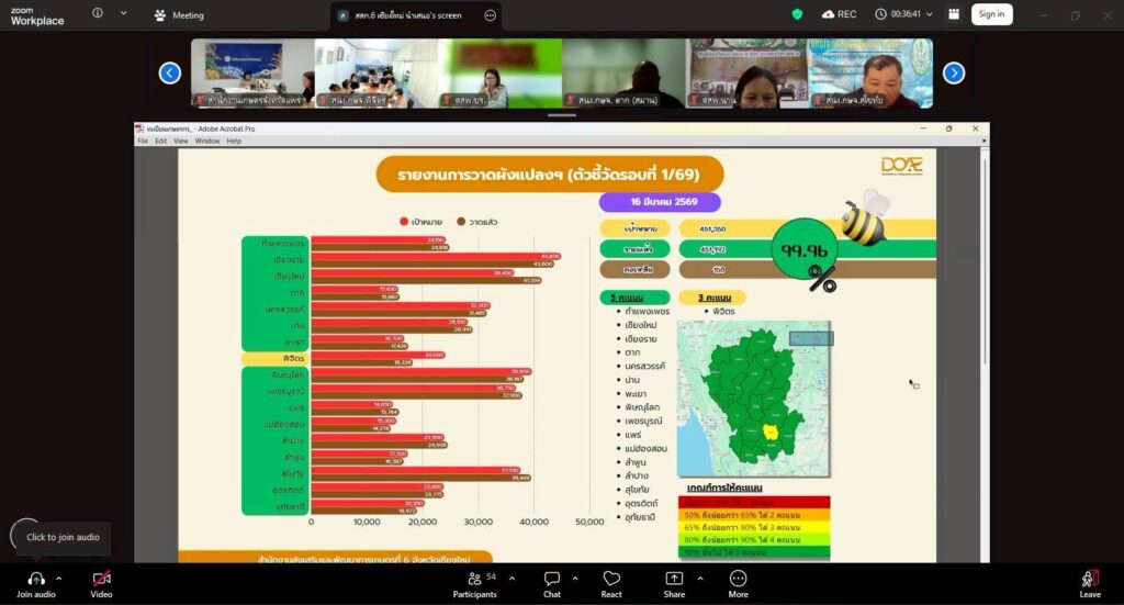 ผ่านระบบออนไลน์ Zoom Meeting. จากห้องประชุมสำนักงานส่งเสริมและพัฒนาการเกษตรที่ 6 จังหวัดเชียงใหม่