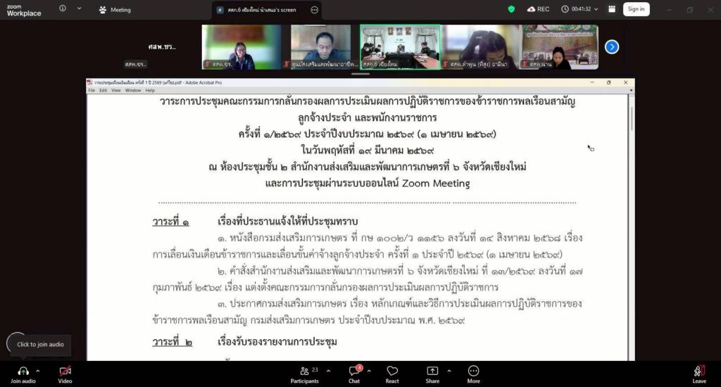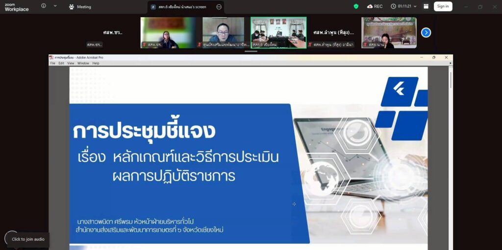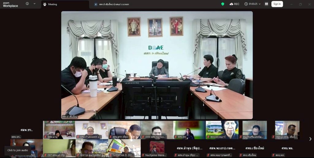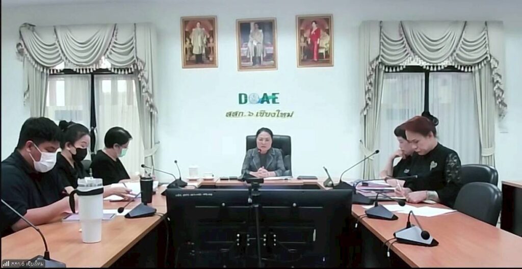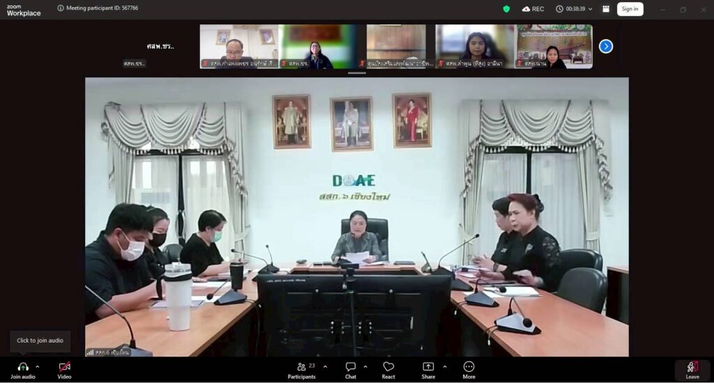 ระบบออนไลน์ Zoom Meeting. จากห้องประชุมสำนักงานส่งเสริมและพัฒนาการเกษตรที่ 6 จังหวัดเชียงใหม่ ณ