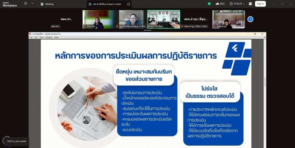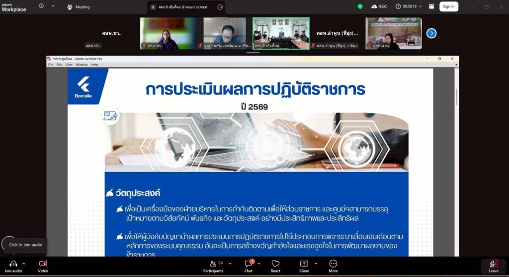 วันที่ 19 มีนาคม 2569 09.30 น. นางพรรณี สุขใส ผู้อำนวยการศูนย์ส่งเสริมและพัฒนาอาชีพการเกษตรจังหวัดเชียงราย พร้อมด้วยเจ้าหน้าที่ศูนย์ฯ เข้าร่วมประชุมชี้แจงหลักเกณฑ์และวิธีการประเมินผลการปฏิบัติราชการ ผ่าน