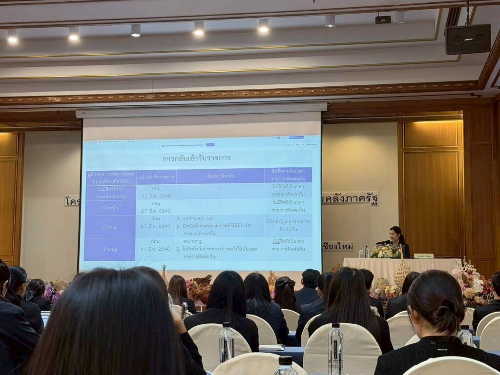 วันที่ 30 มีนาคม 2569 เวลา 08.30 น. นางพรรณี สุขใส ผู้อำนวยการศูนย์ส่งเสริมและพัฒนาอาชีพการเกษตรจังหวัดเชียงราย มอบหมายให้นายปรัชญา อยู่อินทร์ เจ้าพนักงานธุรการชำนาญงาน เข้าร่วมฝึกอบรมหลักสูตร กฎหมาย ระเบียบการเงินการคลังภาครัฐ สำหรับบุคลากรของหน่วยงานของรัฐ จัดโดยสำนักงานคลังเขต 5 จังหวัดเชียงใหม่ เพื่อให้การปฏิบัติงานเกี่ยวกับการขอรับเบี้ยหวัด บำเหน็จบำนาญและเงินอื่นในลักษณะเดียวกัน และการปฏิบัติตามกฎหมายระเบียบเกี่ยวกับสวัสดิการรักษาพยาบาลข้าราชการเป็นไปด้วยความถูกต้อง รวดเร็ว ทันตามกำหนดเวลาด้วยความระมัดระวัง รอบคอบ มิให้เกิดความเสียหายแก่ทางราชการ และเกิดการปฏิบัติงานที่ผิดพลาดจากระเบียบที่กำหนด ณ ห้องเรือนภูคำ โรงแรมคุ้มภูคำ อำเภอเมืองเชียงใหม่ จังหวัดเชียงใหม่